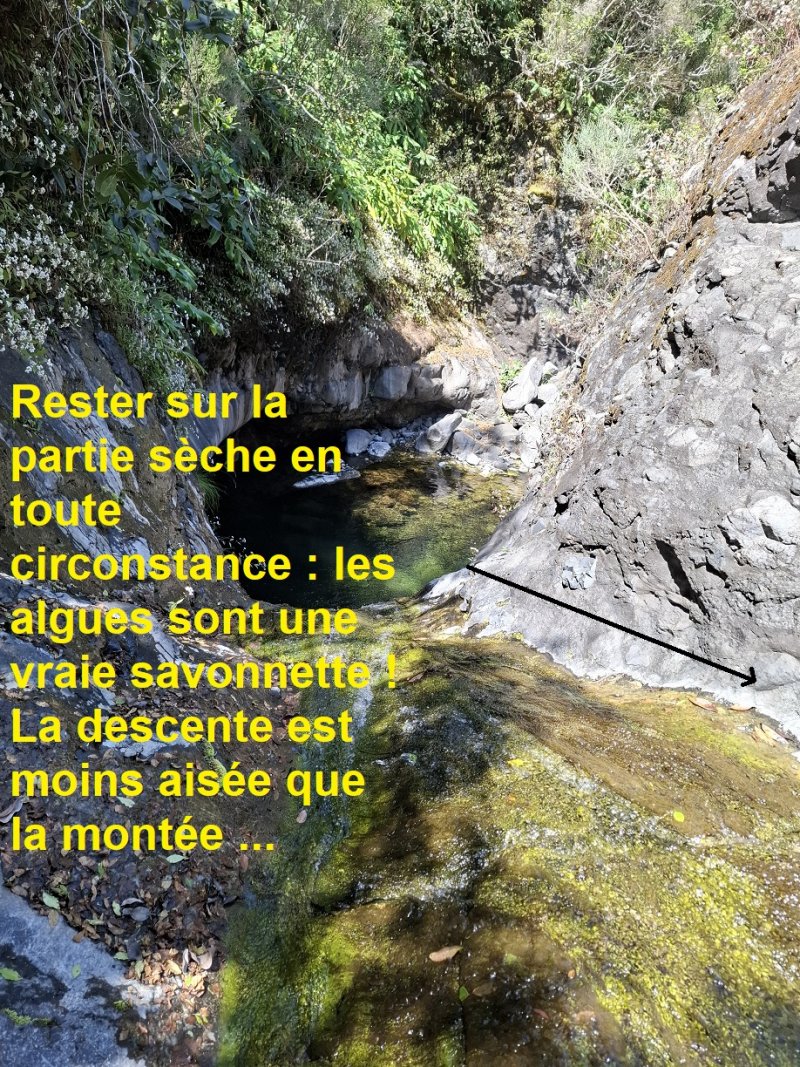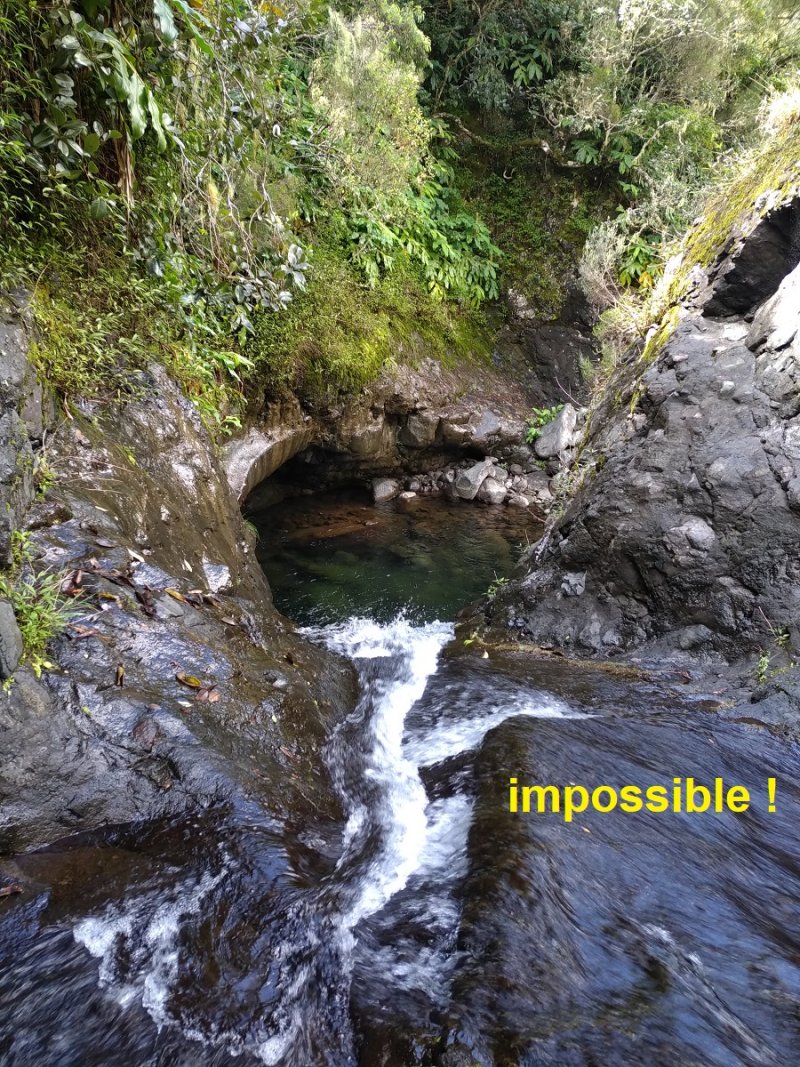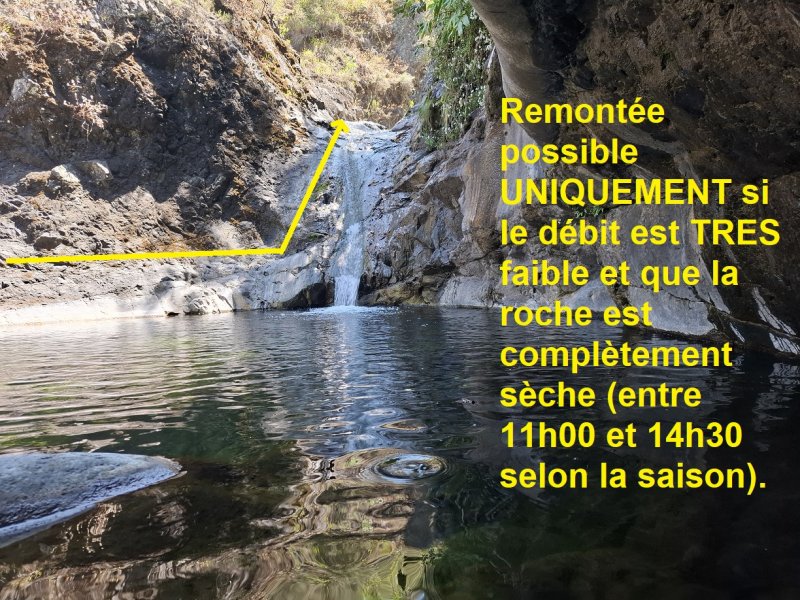 Photo 3 : fort débit et/ou roche mouillée > impossible !