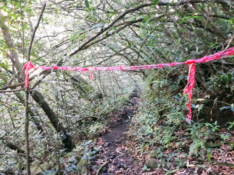 Le sentier était d'autant bien balisé, qu'il doit y avoir un trail programmé, ils avaient fait des marquages bien visibles. Il y a un cordon de barrage au milieu du sentier pour indiqué aux coureurs de monter. On passe facilement dessous.