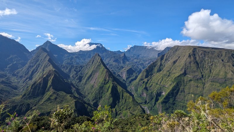 En ce jour (16/02/2024), j'ai voulu emmener ma chérie sur ce circuit pour voir Mafate après une petite ascension au dessus de Dos d'Ane. Jusque la rien d'anormal, de beaux paysages et un temps magnifique (toute fois éviter d'y aller après 10h30 car les nuages ont tendance à revenir dans les terres et bloque la vue, voir même amène de la pluie). Tout aller très bien, y compris la première partie qui mène jusqu'à la roche écrite, mais voilà le drame ( 😂 ).
