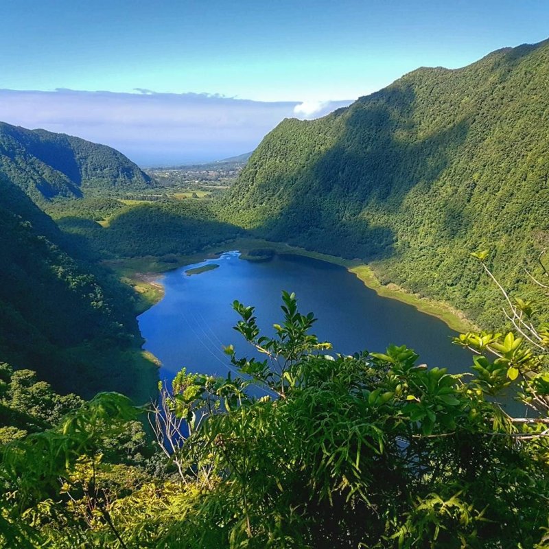 Le point de vue sur l'usine de Takamaka par la montée à la Fenêtre de Grand Etang