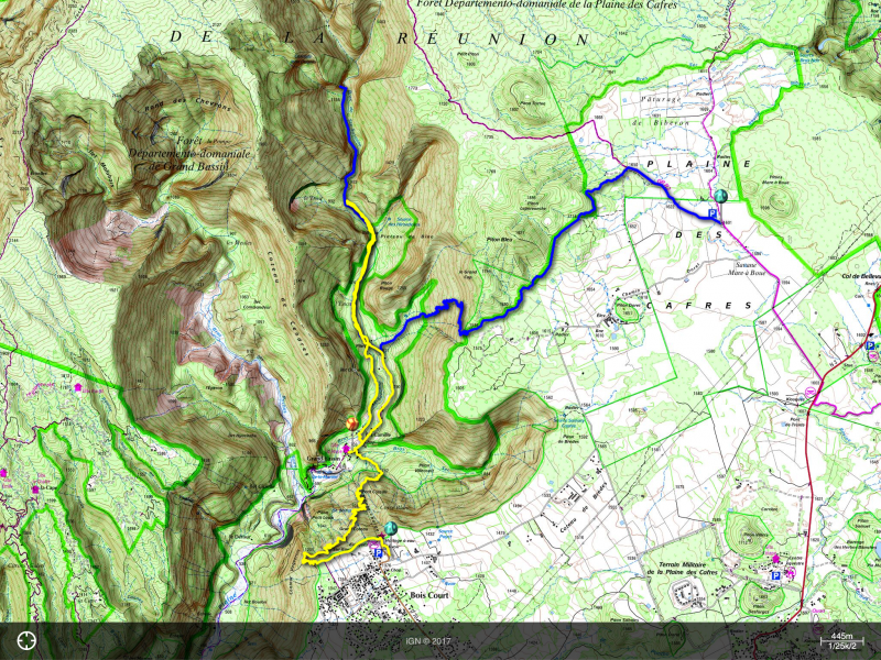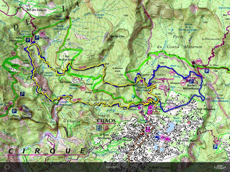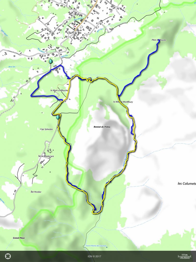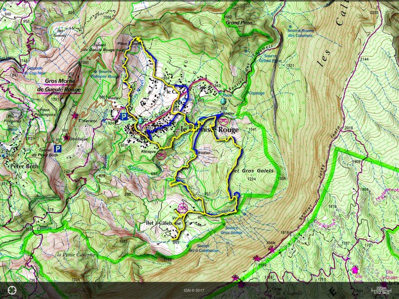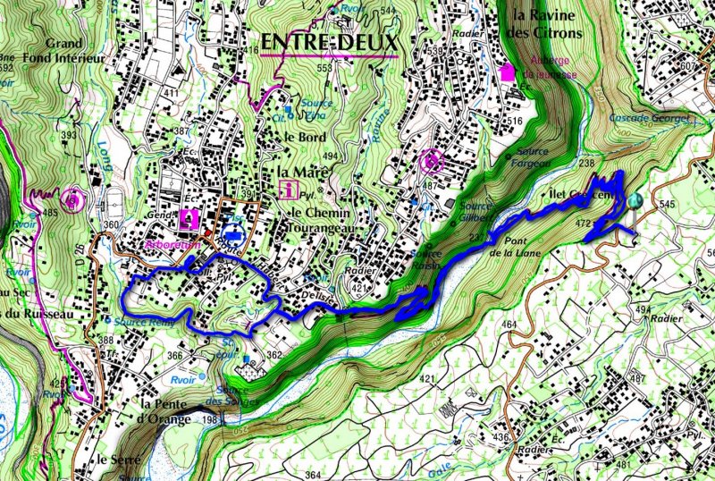 La boucle de la Roche Merveilleuse depuis l'hôtel des Thermes de Cilaos.