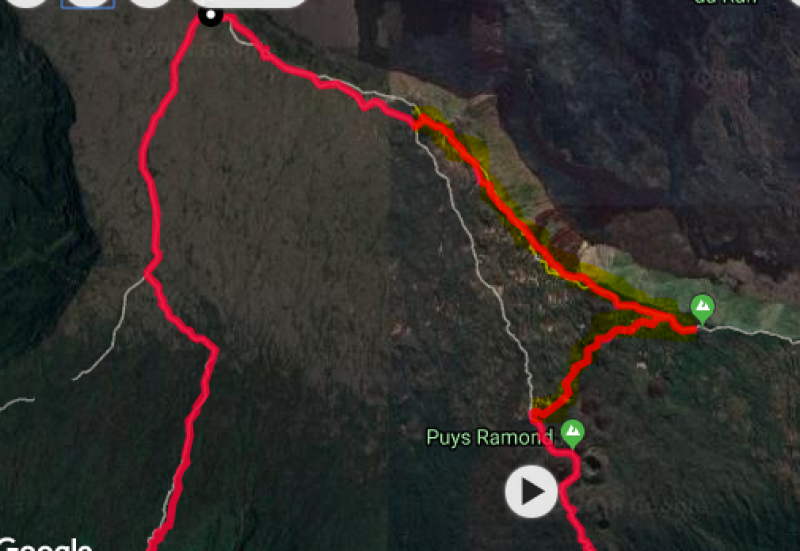 un petit check météo (j'y étais hier en voiture au pas des sables, à peu près la même météo aujourd'hui, TOP****), chargement du téléphone, de la montre "gps", trace gpx en place et en avant ce matin (départ 7h20 du gîte) pour cette Magnifique boucle. L'objectif principal té pou monté voir les Puys Ramond (Ouuui!), au passage caldeira, etc..