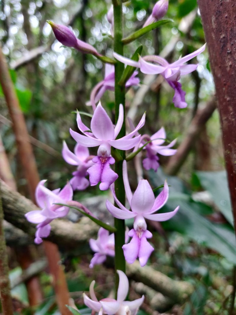 Boucle réalisée ce 21.12.22 en 5h20 dans le sens horaire (que je conseille). Le sentier du Malbar Mort est bien dégagé et se parcourt sans problème. En continuant, on profite d'un bel endroit où de nombreuses Calanthes sylvatica lila sont en fleur. Puis on débute le sentier des Merles qui est bien encombré : Les longoses recouvrent de nombreux tronçons du sentier. Connaître ce sentier est un plus car on se demande bien souvent où se trouve la trace à suivre.