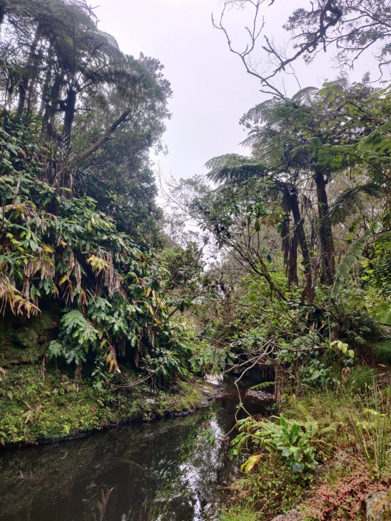 À la côte 820, au passage de la petite ravine, une nouvelle trace a été ouverte un peu plus haut que l'ancienne mais son passage est un peu plus délicat. Prendre l'ancienne trace, est le mieux quitte à se frayer un chemin dans les fougères.
