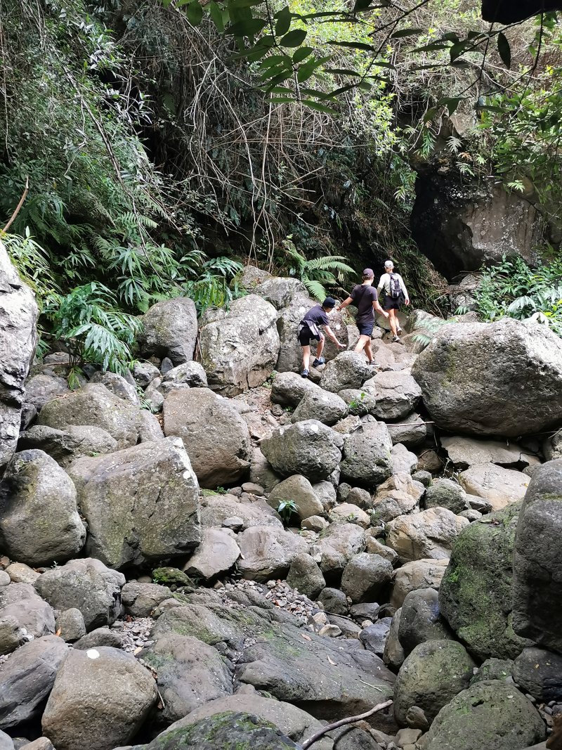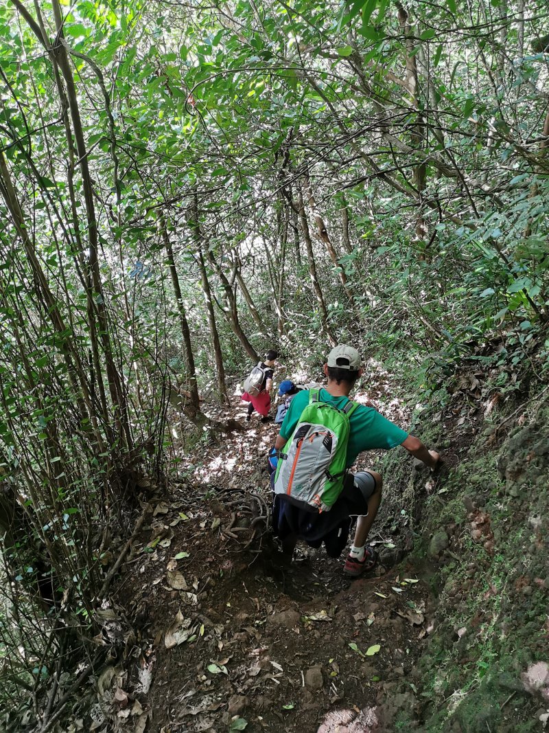 bonjour alors petite balade tranquille de 1h30. on a commencé sur la route directe avant la grande pente jusqu’à Les canots ensuite remontés jusqu’à un aire de pique-nique je pense et la perdu la trace du sentier de notre faute . heureusement retrouver grâce à l'application et le Gps . puis vient la remontée de la ravine. c'est cour mais intense .