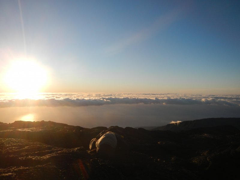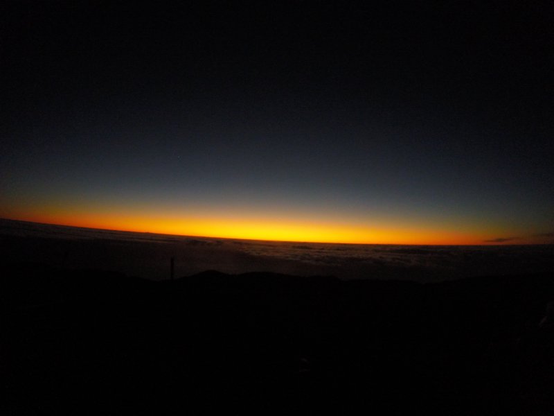 Un somptueux lever de soleil ce jeudi 5 novembre. Heureusement que nous sommes arrivés les premiers, à 4h30, car, à partir de 5h20, trois couples de touristes nous ont pourri le moment, et ma petite sieste au sommet. En effet, ils ont, fortement, fait connaissance au sommet comme si il n'y avait qu'eux.