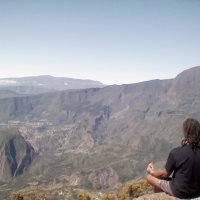Faite ce matin, départ 3h30, arrivé à 7h. Sur la route, magnifique lever de soleil sur un tapis de nuages. Puis, une fois au sommet, une somptueuse vue, complètement dégagée, sur Salazie.