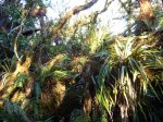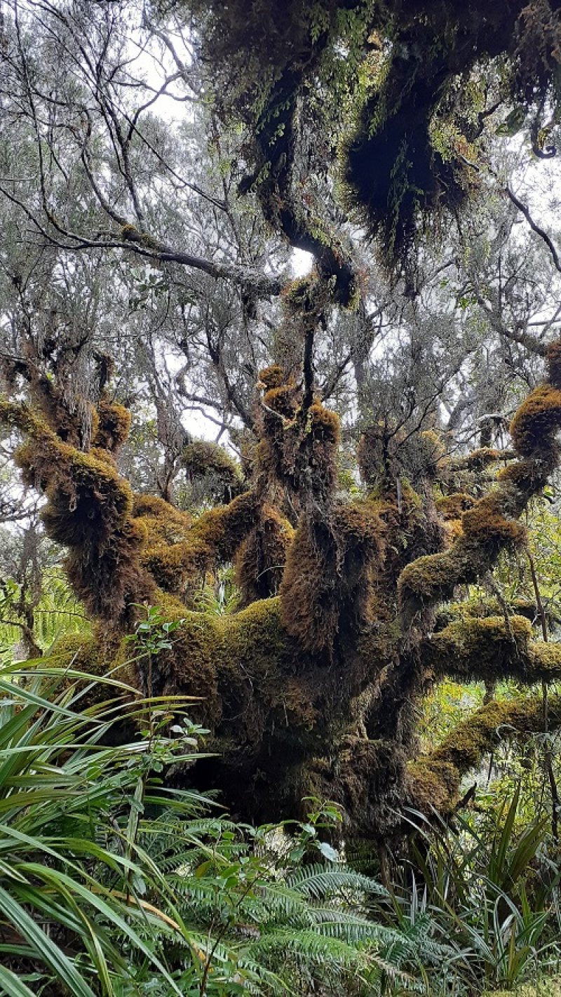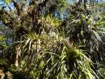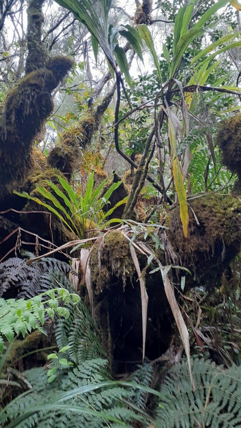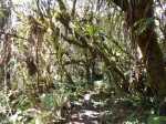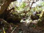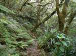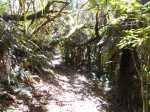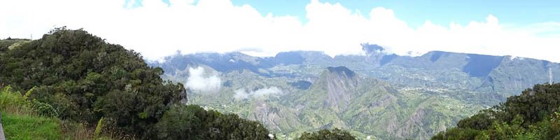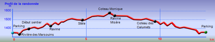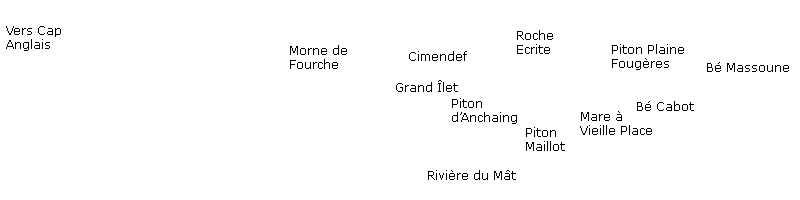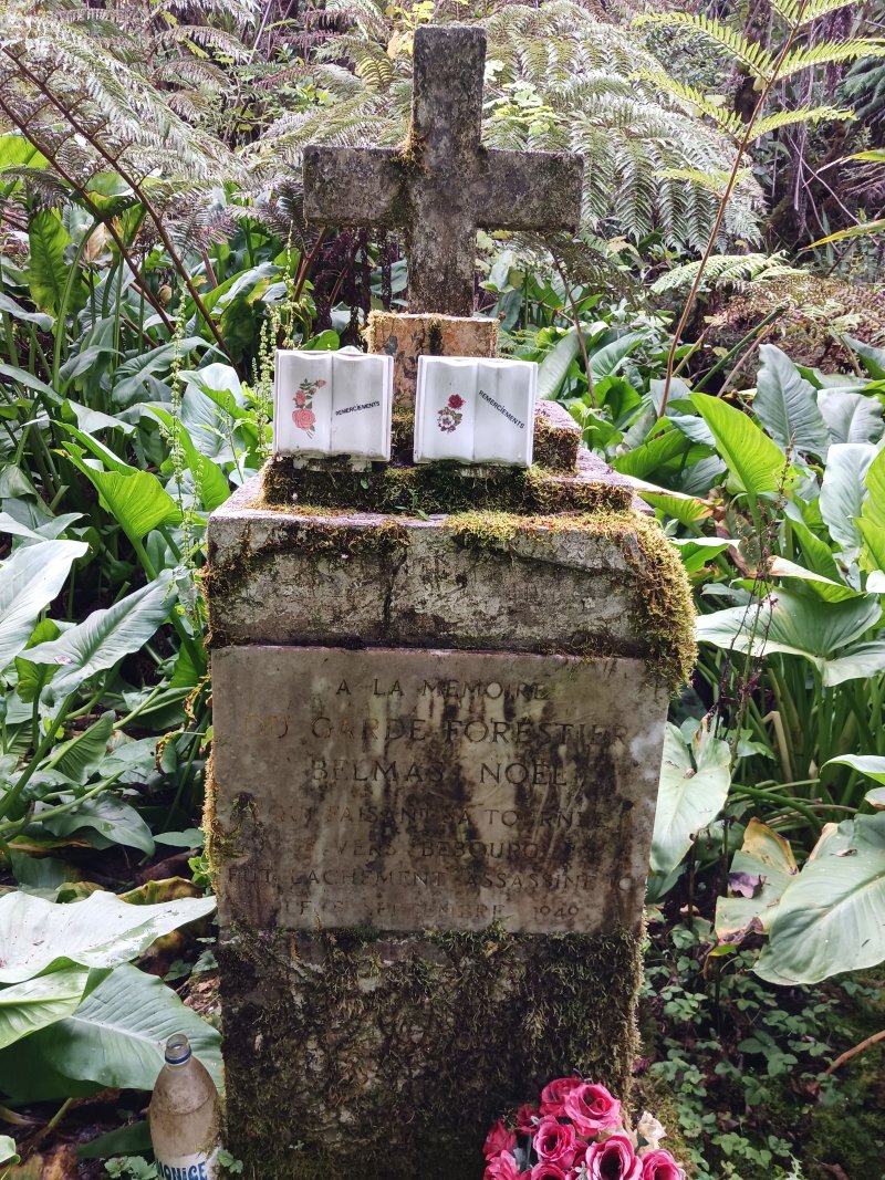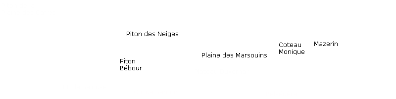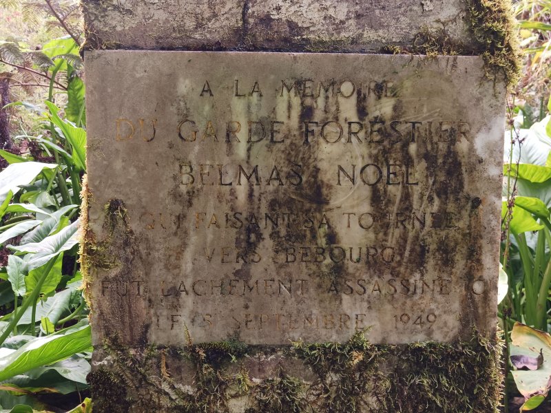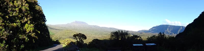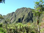 La randonnée débute par le sentier de la Rivière qui est facile à repérer sur la gauche de la route. Les parkings ne sont pas très marqués mais de vrais emplacements sont situés un peu après. Attention, il est important de stationner aux bons endroits sur cette route. Les fougères (Blechnum attenuatum) qui entourent les troncs au départ de ce sentier donnent très vite le ton : l'endroit est humide (Photo 1). Les fougères diminuent un peu mais ce sont les mousses qui prennent le relais en recouvrant tous les troncs (Photo 2). Le sentier est assez plat. Il est humide et parfois boueux mais des palettes ou bois posés au sol isolent de la boue. On parvient, les pieds assez secs à l'escalier qui rapproche des berges de la Rivière des Marsouins dont le fond est recouvert de grosses roches grises et glissantes. Un écart de quelques minutes permet de remonter le cours d'eau en sautant de roche en roche pour se rapprocher du bassin alimenté par une courte cascade (Photo 3). Franchir le gué et poursuivre sur le sentier juste en face. Il grimpe assez fortement au départ sur les mêmes pierres qui encombrent le passage et créent de hautes marches. Il se calme rapidement en traversant une belle forêt de bois de couleurs entourés de fougères (Photo 4). Plus haut, un plancher recouvre le sentier à l'approche de la route dans une magnifique forêt primaire telle qu'on en traversera jusqu'au Coteau Monique (Photo 5). Partir sur la gauche pour trouver rapidement le sentier des Mares et des Bois de couleurs, bien indiqué. Les abords de la route sont recouvert de belles essences végétales avec parfois des points de vue sur les pitons alentour (Photo 6). C'est parti pour 4 km qui n'ont pas besoin de beaucoup de descriptions car le paysage est toujours le même. La courte définition du sentier de la Rivière suffirait, ou presque, à résumer la sortie et la forêt traversée. Le sentier est parfois étroit mais ne se perd jamais entre les gros arbres moussus (Photo 7). Certaines portions, en général celles qui sont plates et humides, sont couvertes de jouvences qui peuvent cacher un peu le sentier (Photo 8). Bien malin le randonneur qui peut nommer tous les arbres tellement ils sont recouverts de toutes sortes de plantes (Photo 10). C'est plus facile pour le tan rouge et ses petites feuilles découpées ou le mapou avec les siennes rondes et très coriaces. Les autres demandent un sérieux entraînement. Par deux fois, il faut descendre puis remonter pour franchir des ravines, affluents de la Ravine Misère ou de la Rivière des Marsouins avant de parvenir au Plateau des Calumets. Ce bambou endémique se retrouve un peu partout le long du parcours. A partir du plateau, ce sont des plantations de jeunes tamarins qu'on traverse sur un sol herbeux très agréable au milieu des branles qui cherchent à repousser les tamarins. (Photo 11). Un sentier part sur la gauche à travers les herbes. Il permet à ceux qui ne connaissent pas le Plateau de Thym d'y faire un crochet si le chrono le permet. Il se situe en face, de l'autre côté de la route. On n'est pas obligé d'effectuer le circuit complet pour apprécier ce petit coin tranquille et ses mares au milieu des branles, joncs et fleurs jaunes… Les tamarins cessent comme ils ont débuté et on se retrouve en forêt classique avec ses arches végétales créées par des arbres couchés qui poursuivent leur croissance (Photo 12). Le sentier est moins tortueux, plus plat que précédemment (Photo 13). Il est assez proche de la route comme le prouve le bruit des véhicules qui y passent. Nouvelle petite descente pour franchir la Ravine Misère qui est bien modeste si près de sa source. Un détour amène à une stèle érigée dans les arums (Photo 16). Le petit monument, surmonté de sa croix rappelle l'assassinat du garde forestier Noël Belmas en septembre 1949 alors qu'il effectuait sa tournée habituelle. Situé au plus près de la route, le monument est facile d'accès par un escalier moussu visiblement peu utilisé (Photo 17). Le sentier des Mares et Bois de Couleurs prend fin à cette stèle et c'est le Sentier des Tamarins qui prend le relais. Si jusqu'à présent la boue s'évitait parfois par de rares planchers et les ravines se passaient à gué, ce nouveau sentier comporte quelques courte passerelles qui facilite le franchissement (Photo 18). Peu de différence avec les sentiers précédents (Photo 19). Il est plus rectiligne et devient plat après une pente faible de quelques centaines de mètres. Les tamarins y sont plus nombreux que depuis le départ mais rien à voir avec le magnifique sentier de la Tamarinaie qui se termine au gîte de Bélouve. Le sentier traverse parfois des zones où les fougères arborescentes (fanjans) sont plus nombreuses qu'ailleurs (Photo 21). En fin de parcours, les portions humides se multiplient au milieu des grands joncs et des fleurs jaunes (Photo 24). Les quelques marches qui finissent à la route sont un soulagement car elles marquent la fin de cette sortie débutée il y a 3 heures (Photo 25). Vingt mètres plus loin débute le parking du Coteau Monique sous les grands cryptomerias (Photo 26). On peut faire demi-tour immédiatement pour filer vers le sentier de la Rivière sur un terrain qui descendra plus qu'à l'aller et demandera un peu moins de temps. Il est possible également de partir sur la route vers Bélouve où on n'a que l'embarras du choix pour trouver son circuit (Photo 28).