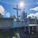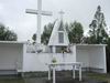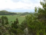 La randonnée peut débuter n'importe où mais il est plus facile de se garer près de la station de pompage décrite dans l'itinéraire ci-dessous. Près du bloc et son Gouzou, partir sur la petite route en longeant les prairies dominées au loin par le Piton Rouge (Photo 1). La route se transforme en piste toujours bordée de prés envahis d'acacias noirs qui abritent les troupeaux (Photo 2). Plus haut, à l'approche d'une réserve d'eau sur la droite, ce sont les ajoncs d'Europe qui ont pris possession des prairies situées au pied du Piton Dugain, tout proche (Photo 3). On s'approche d'un château d'eau sur la gauche, juste en face des dernières clôtures gardant les troupeaux (Photo 4). Laisser la piste continuant vers la gauche et commencer la montée par celle de droite. La courte ascension de 50 m de dénivelé commence sous les cryptomerias. On rencontre même quelques bois de couleurs et des pins d'Oregon qui laissent passer le regard vers la Plaine des Cafres (Photo 5). La piste effectue une longe boucle vers la gauche en poursuivant la montée et se termine sous les pins d'Oregon laissant au sol leurs aiguilles rougies (Photo 6). On arrive très vite au sommet occupé par un grand oratoire victime des intempéries qui le grisonnent un peu (Photo 8). Une niche abrite une Vierge devant une croix blanche qui ne se voit guère de loin en raison de la taille des arbres. L'édifice comporte même un autel pour sans doute y faire des messes.