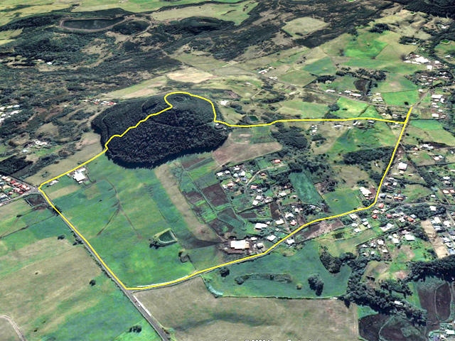 Se rendre à Bourg Murat et emprunter la route de la Grande Ferme puis la Route Forestière du Volcan en roulant vers la Fournaise - Après le croisement, se garer à la troisième route à gauche, près de la station de pompage et de son Gouzou amoureux de sa vache - Reprendre la route en sens inverse et tourner immédiatement à droite sur la route du Piton Dugain - Suivre la route, puis la piste à droite jusqu'au sommet du Piton - Trouver dans la végétation le départ du sentier qui redescend à pic le piton en ligne droite jusqu'à la route de Bourg Murat - Suivre cette route puis celle de gauche suivie en véhicule et rejoindre le départ de la sortie.