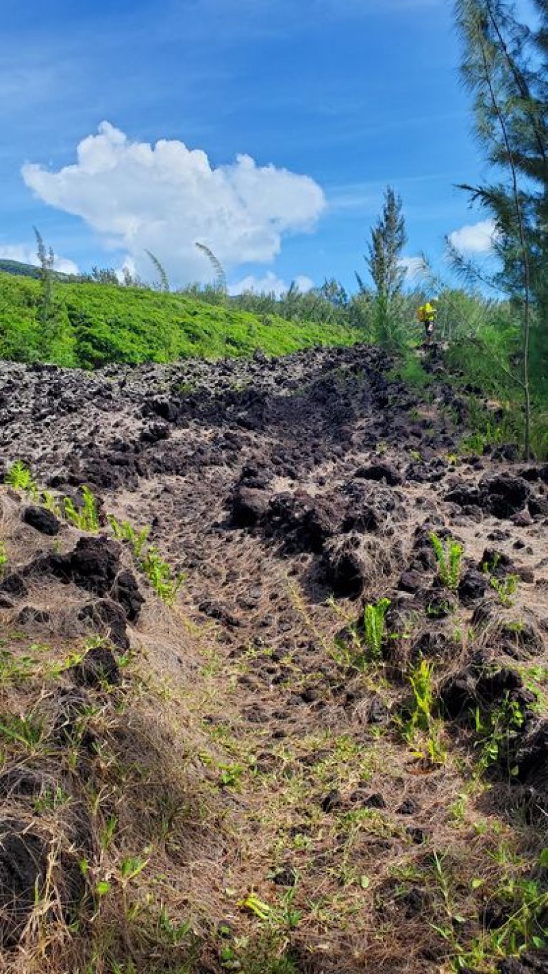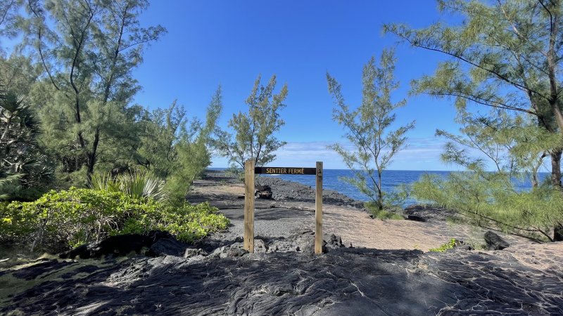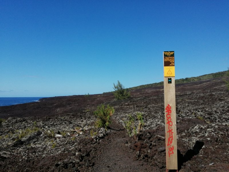Très praticable en 2005, détruit en partie par la coulée de 2007, abandonné jusqu'en 2020 puis remis totalement en état en 2022, le Sentier des Laves a retrouvé de sa superbe aussi est-il est fortement conseillé de le pratiquer sans modération. Remarquablement balisé, il propose une signalétique claire et très précise qui empêchera quiconque de s'égarer. Le clou de la balade est ce magnifique sentier sur pierres de lave aménagé à même la coulée et permettant de regagner sans effort la nouvelle plage du Tremblet et le Vieux Port. La longueur du parcours proposé est courte mais le sentier n'est pas classé en familial en raison des multiples pièges dus aux pierres de lave plus ou moins visibles dans la végétation imposant souvent de lever le pied. De plus, une cinquantaine de petites dents de scie dépassant rarement les 3 m arrivent à cumuler près de 300 m de D+ sur un parcours court et semblant plat de prime abord. Le circuit est proposé d'un arrêt de bus à l'autre mais peut très bien se pratiquer en boucle à condition de supporter la dizaine de km sur goudron. Si le sentier était en cours de nettoyage le jour de la création de la fiche il semble régulièrement entretenu, cependant la meilleure façon de nettoyer un sentier est d'y passer nombreux. Une randonnée longtemps attendue et à consommer sans modération. Merci à l'ONF de l'avoir sortie de ses cendres et dommage qu'il n'y ait pas eu davantage de publicité sur cette réouverture.