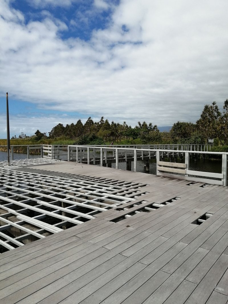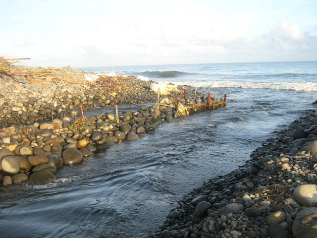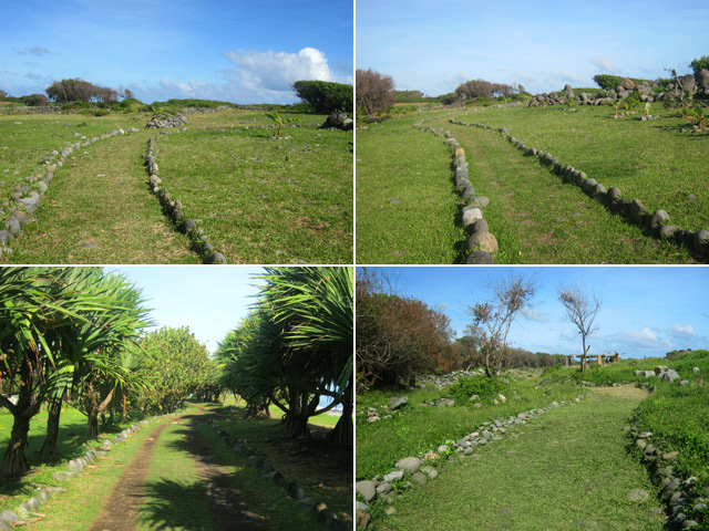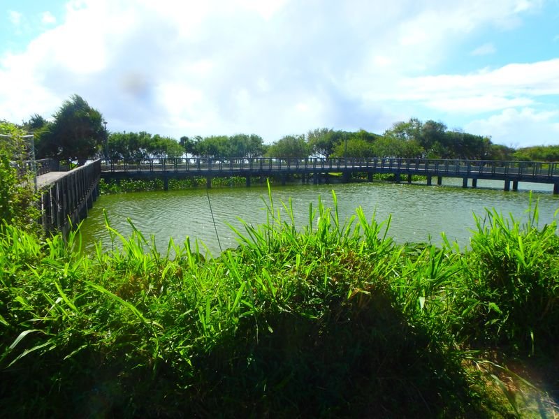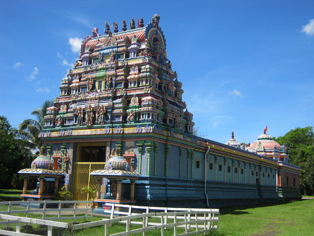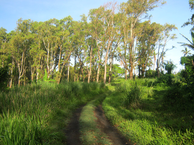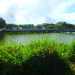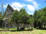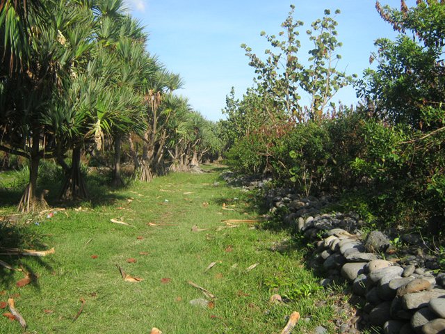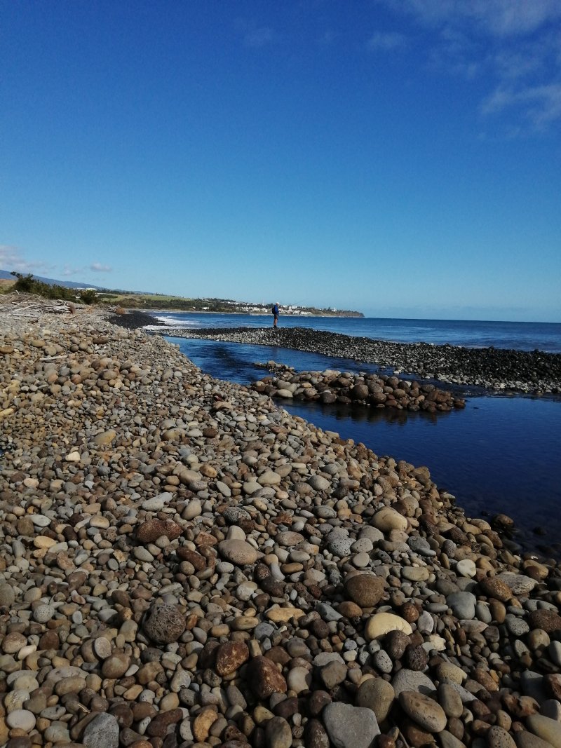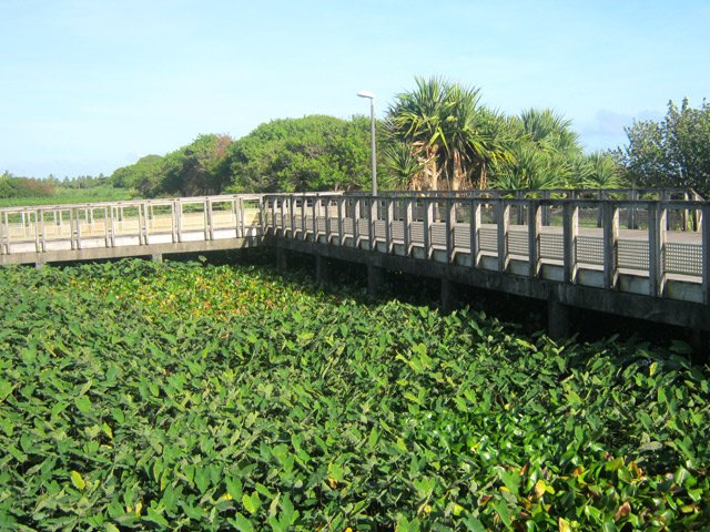 La randonnée débute à la Marine de Sainte-Suzanne, située sur la rive droite de la rivière. Se rapprocher de la déchèterie, non pour y glaner quelques odeurs mais pour profiter du beau point de vue sur les montagnes à partir des berges de la rivière (Photo 1). Il est possible de rejoindre les deux rives par la plage de galets si elle n'est pas trop creusée par les pêcheurs de bichiques et si on vient de Sainte-Marie par la plage (Photo 2). De l'autre côté de la rivière apparaissent quelques installations du parc de loisir du Bocage avec panoramas sur le Gros Morne (Photo 3). Longer la presque totalité de la Rue des Pêcheurs. Après cette route truffée de nids de poules aux alentours de l'école de la Marine et une traversée du village, gagner la plage de galets par une piste caillouteuse qui débute à gauche en face des dernières habitations. Rejoindre rapidement la plage de galets pour une courte traversée jusqu'au delta de la Grande Rivière Saint-Jean. Avec un estuaire en constants changements dus aux mouvements incessants de la mer et de la rivière, difficile de donner un itinéraire précis. Chercher donc le meilleur passage sachant qu'on sera obligé de franchir les pieds dans l'eau. Le débit est variable mais peut être fort. La hauteur d'eau ne dépasse pas les 60 cm, la largeur est très faible et le courant est lié à la force des vagues qui cherchent à envahir la rivière (Photo 4). C'est plus aisé à marée basse. Ce sera la seule occasion de se mouiller durant tout le trajet ; il est donc préférable de se déchausser pour éviter de faire pénétrer le sable dans les chaussures trempées. Une fois la traversée effectuée, on suit un peu la rivière qui ressemble parfois à un petit lac d'eau calme (Photo 5). On se retrouve plus loin face à un grand tas de terre qui marque le début de la déchèterie. Un sentier part vers la gauche et longe les deux usines (distillerie et sucrerie) pour se terminer à la route de Bois Rouge. Il est de plus en plus recouvert d'herbes ou de déchets et il est préférable de monter la butte et de traverser la zone de stockage de containers pour rejoindre une belle piste qui se termine également à la route de Bois Rouge. L'usine est assez longue mais le contournement, quel que soit le trajet emprunté, est rapide (Photo 6). Pas de pancarte d'interdiction de passer. Poursuivre à travers le hameau de Bois Rouge en passant devant le terrain de sport et en marchant jusqu'au petit rond-point en fin de route. Poursuivre sur une piste herbeuse, sous de grands eucalyptus, qui mène presque aux berges de l'étang (Photo 7). La région est une large plaine cultivée de canne à sucre comprenant le grand étang de Bois Rouge (Photo 8). L'endroit est charmant avec ces beaux paysages en direction du Gros Morne et des pitons qui l'entourent (Photo 9). Les jacinthes d'eau ont envahi une grande partie de l'étang (Photo 10). Après avoir profité des reflets du Gros Morne dans les eaux claires, on retrouve très vite une magnifique aire reboisée de petits arbustes et entretenus par l'association 3E (Environnement Est Ecologique ?). Quelques installations sommaires sont construites en bambou mais ne restent pas des années en raison des vents lors des épisodes cycloniques (Photo 12). Plus loin c'est une autre section entretenue par l'Association de Développement du Quartier des Mille Roches qui tond, peint et range les galets le long du chemin (Photo 14). Une piste herbeuse bordées de murets de galets ou de vacoas prolonge ces belles pistes (Photo 15). Un vrai plaisir de marcher ici jusqu'au Petit Etang de Bois Rouge (ou Cambuston, ou Colosse en fonction des gens que l'on rencontre !). On longe les installations de décantation de la station d'épuration sans en être gêné. Des passerelles au-dessus de l'eau couverte de jacinthes sont devenues trop dangereuses et sont désormais interdites au public (Photo 16). Espérons que les planchers seront refaits à neuf dans le cadre du réaménagement du parc du Colosse qui devrait prendre beaucoup de temps. Lorsque c'est possible, la promenade était ludique. Marcher ensuite en bord de mer sur une piste caillouteuse proche de la longue plage de galets (Photo 17). On peut même employer des petits sentiers qui traversent des zones herbeuses (Photo 18). La piste est agréable avec le talus sur la droite qui retient les eaux marécageuses du Petit Etang (Photo 19). A la fin du talus, partir effectuer un court écart vers les berges de l'étang (Photo 20). On rencontre très vite une large et plate piste, peu ombragée (Photo 21) qui se termine à la D47 après avoir longé un champ d'ananas mieux gardé que la prison de Domenjod par des dizaines de tôles ondulées en guise de clôture (Photo 22). Malgré le passage sur la route assez fréquentée, une halte au temple tamoul (Photo 25) ou à la cheminée en ruine permet de diversifier les paysages (Photo 24). L'arbre qui pousse en haut de la cheminée donne l'impression d'une fumée verte qui en sort, poussée par le vent ! Après une minuscule ravine, on trouve d'un simple coup d'œil la piste (Photo 26) qu'on suit sans aucune difficulté jusqu'à un restaurant puis une église en ruine (Photo 27) qui marque la fin du parcours. Ne pas manquer le minuscule cimetière marin dont une partie a été emportée par un cyclone ainsi que l'immense ficus au pied de l'église. Le retour s'effectue par le même itinéraire.