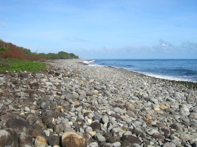 Cette randonnée le long des plages de gros galets du Nord n'est pas la plus connue ni la plus facile de toutes celles qui suivent le littoral Est et Nord mais elle présente l'avantage de visiter deux étangs situés à quelques encablures de la plage. Le Grand et le Petit Etang de Bois Rouge sont deux belles étendues d'eau dans lesquelles se reflètent les montagnes environnantes. De nombreux butors semblent connaître leurs berges poissonneuses car ils s'envolent à l'approche du randonneur. Quelques portions comportent d'anciennes traces en très mauvais état où il vaut mieux marcher sur les galets mais tous les tronçons additionnés ne dépassent pas le kilomètre. Le reste du circuit est très bien entretenu par des associations qui le maintiennent dans un excellent état. Les panoramas sur la montagne sont grandioses au lever du soleil ; le regard englobe un paysage allant du Volcan à la Roche Ecrite avec le Piton des Neiges et le Gros Morne bien visibles au centre. On peut profiter de la balade pour visiter également le Parc du Colosse, le Temple tamoul, la vieille cheminée surmontée d'un arbre ou l'église en ruine de Champ Borne. La chaleur peut y être très forte si le vent est calme ou absent et les points d'eau sont rares.