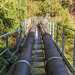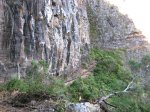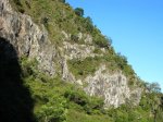La canalisation des Hirondelles est assez connue à la Réunion, du moins son nom. A chaque cyclone ou grosse perturbation, des éboulis ou des roches qui tombent des hautes falaises déplacent, percent ou écrasent la canalisation, privant ainsi d'eau une bonne partie du Tampon et de quelques villages alentour. C'est une canalisation qui court sur les flancs du rempart séparant le Pont d'Yves de Grand Bassin et arrivant 30 mètres plus bas que la station de pompage qu'on rencontre dans la descente de Grand Bassin. On retrouve plusieurs similitudes avec la canalisation des Orangers (quasi platitude du circuit, largeur du chemin, à-pics impressionnants, paysages alentours sublimes, etc). Le seul problème vient de la fermeture officielle du sentier qui suit la tuyauterie. Une porte grillagée en interdit l'accès côté Grand Bassin même si une discrète "échelle" a été soudée entre la porte et la muraille. Une autre porte, qui se passe plus facilement, remplit le même office à l'arrivée à Pont d'Yves. L'astuce consisterait donc à effectuer le trajet en partant du Pont d'Yves mais cette randonnée ne serait pas assez sportive, aussi est-elle proposée ci-dessous à partir de Bois-Court. Les plantes ont tendance à envahir rapidement mais les travaux d'entretien de la canalisation imposent de nettoyer régulièrement. Le cheminement le long de cette canalisation ne comporte aucun danger, excepté le passage de la grande cascade sur un sentier béton très étroit. La largeur du chemin, taillé dans la roche, empêche toute crainte liée au vertige. Il ne faut bien sûr pas s'approcher de trop près du rempart lorsque la végétation se raréfie et on se doit de faire attention lorsqu'on passe les petits éboulis qui recouvrent le tuyau sur quelques mètres. Espérons que, comme de Sans Souci aux Orangers ce sentier sera bientôt ouvert officiellement car il offre des panoramas extraordinaires sur toute la région du Bras de la Plaine. Le passage de la porte se fait sous l'entière responsabilité de celui qui décide d'effectuer ce magnifique trajet.