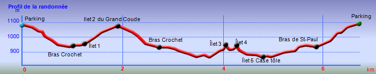 Se rendre dans le Cirque de Cilaos et gagner l'Ilet à Cordes - Se garer au début du Chemin du Bras de Saint-Paul - Débuter la randonnée par la route puis emprunter l'escalier en bas de la pente pour débuter sur le sentier - Marcher jusqu'à la rivière et la traverser pour suivre le sentier qui part en face - 20 mètres plus loin, partir sur la droite, remonter vers l'Îlet du Bras de Saint-Paul puis vers celui du Grand Coude - Faire ensuite demi-tour jusqu'au premier croisement et poursuivre plein sud - Suivre le sentier, franchir des gués et remonter sur le plateau - Visiter les quelques petits plateaux abandonnés et revenir au point de départ par le même itinéraire.