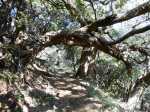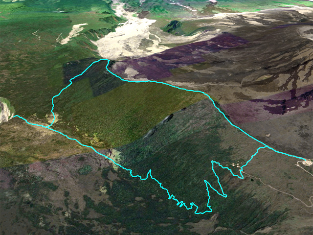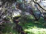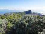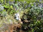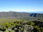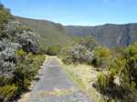 La randonnée débute au Pas de Bellecombe-Jacob ou au Gîte du Volcan. Dans ce cas le départ sera plus difficile mais la distance à parcourir un peu plus courte. On commence par un itinéraire classique à partir du parking et du belvédère du Pas de Bellecombe-Jacob sur une piste large et caillouteuse qui se finit en escalier de plaques de laves avant d’arriver à la grille fermant parfois l’Enclos Fouqué, notamment en période éruptive. Du belvédère ou de plusieurs points de la descente, il est possible d'admirer le Piton de la Fournaise sur la droite. Si on n’a pas le temps, ce n’est pas grave puisque les panoramas le long du sentier vers le Nez Coupé de Sainte-Rose seront également sublimes. Repérer sur la gauche le sentier venant du gîte qu'on empruntera en fin de boucle dans plus de 6 heures. La boucle débute par le sentier du Piton de Partage qui ne comporte aucune difficulté. Il chemine presque à plat à travers les branles, petits tamarins ou fleurs jaunes dans lesquels volettent des zoizo verts et zoizo blancs (Photo 1). On a le vide à droite vers l'Enclos Fouqué et la Fournaise (Photo 2) et une pente plus naturelle à gauche qui permet de voir le Fond de la Rivière de l'Est (Photo 3). Le cheminement est agréable sur un sentier un peu humide sous les arbres (Photo 4). Le parcours se poursuit presque à plat (Photo 6) ou en légère descente avant de remonter au Piton de Partage pour de nouveaux points de vue sur le Volcan ou de l’autre côté vers Sainte-Rose et l’Océan. Quelques antennes dépassent de la végétation. Le sol est dénudé près d'une espèce de belvédère protégé d'un grillage et destiné aux observations des éruptions se produisant au nord de la Fournaise. Le sentier se met alors à descendre, parfois fortement en direction du Nez Coupé de Sainte-Rose avec de plus en plus de marches (Photo 7). Raviné maintes fois par les pluies fréquentes, il comporte souvent des marches très hautes qu’il faut aborder avec calme. Il passe aussi en bordure de rempart en occasionnant quelques petites sensations de vertige mais le bord très végétalisé rassure la plupart du temps. Les glissades sont possibles sur les portions sableuses ou humides. Durant la descente, c'est le festival de panoramas dans toutes les directions avec le Nez Coupé en point de mire (Photo 8). Après un bon kilomètre de cette descente, le sentier devient un peu plus plat sans jamais s'éloigner du bord du rempart. On se retrouve au niveau du Cassé de la Rivière de l'Est qu'on repère sur la gauche et qu'on va tenter de rejoindre sans trop d'illusions sur la facilité du parcours (Photo 10). Depuis le départ, il faut près de deux heures pour rejoindre le Nez Coupé de Sainte-Rose qu’on "escalade" pour profiter de la table d’orientation, du belvédère et des derniers panoramas avant la descente vers la Rivière de l’Est. Dépasser d'une centaine de mètres le discret piton et bifurquer à gauche pour entreprendre la descente vers la vallée. Ce sentier, qui rejoint plus de 400 m plus bas la Savane Cimetière est difficile, désormais fermé officiellement, étroit et glissant, creusé d'ornières, comportant de très hautes marches et surtout envahi de végétation (Photo 11). En prenant son temps, on l'oublie dès l'arrivée au Cassé de la Rivière de l'Est. Ce tronçon est désormais réservé aux courageux qui ne rechignent pas pour une glissade, une griffure ou une hésitation sur la direction à prendre dans les branles, ambavilles, fougères ou grandes herbes qui cachent de plus en plus l'itinéraire. On ne peut pas s'égarer puisque le but de l'opération est de rejoindre la Ravine de la Savane Cimetière qu'on devine souvent vers le bas. Le circuit sera supprimé du site lorsqu’on ne pourra plus passer du tout car cette boucle présente encore beaucoup d’intérêt. Le plus difficile est la jonction de ce sentier pourri au sentier officiel encore en bon état qui relie le gîte au Cassé de la Rivière de l’Est. Tourner à droite en direction du cassé après avoir franchi la ravine glissante si humide. Il y a moins d'un kilomètre à marcher sur un terrain nu et humide pour se rapprocher du cassé. Le sentier se rapproche de la ravine qui va finir en chute libre dans la Rivière de l'Est. Cette fracture impressionnante donne de très beaux points de vue sur la vallée de la rivière (Photo 12). Attention à la glissade si on descend dans le lit basaltique comportant des marmites pouvant déséquilibrer (Photo 13). On peut, du bord, chercher des yeux les installations du barrage ou deviner le sentier devenu impraticable qui descendait vers le lit de la rivière (Photo 14). Un abri, de plus en plus délabré permettait une petite pose pour contempler le vide ou la cascade mais un éboulis a eu raison d'une grande partie du sol qui l'entourait (Photo 15). Il est plus que conseillé de ne même pas s'en approcher car la prochaine chute dans le vide sera pour lui. La descente vers les citenes de Sainte Rose a également pris des airs d’aventure sportive où il vaut mieux être bien entraîné. La traversée des prairies du fond de la Rivière est très agréable (Photo 16). Fini les troupeaux qui avaient remplacé les moutons. Ils ont disparu à la création du Parc National. On marche sur l’herbe ou la terre boueuse sur un sentier plat bien balisé de blanc, bordé de grands tamarins dont beaucoup ont souffert des cyclones. Ces grandes étendues d'herbe ne seront plus que des landes dans quelques années (Photo 18). Le sentier, après avoir longé la magnifique Ravine de la Savane Cimetière couverte d'herbes verte, se termine dans une forêt de magnifiques tamarins des Hauts (Photo 18). On traverse alors une longue portion de forêt de bois de couleurs sur un sentier qui fait quelques dents de scie sans jamais être difficile. Certains arbres sont assez remarquables et on peut en chercher d'autres comme la boucle est bientôt termin