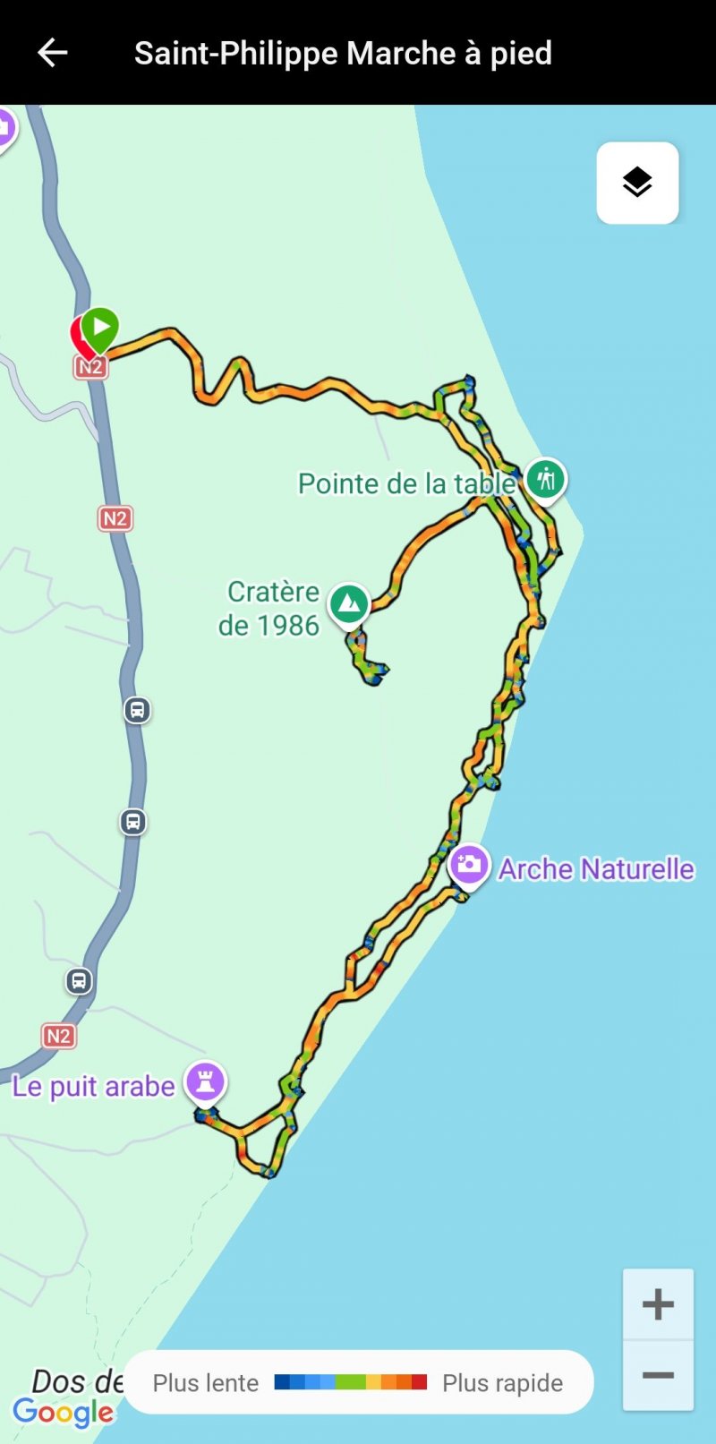 Randonnée réalisée en laissant le véhicule au dessus de la RF3 qui mène à la pointe de la table. Très belle randonnée. Dommage que le planteur de vanille ait bloqué le passage peu après le panneau indiquant l'éruption de 1986. Côté puits arabe il est indiqué que le sentier est fermé, pourtant il ne présente aucune difficulté