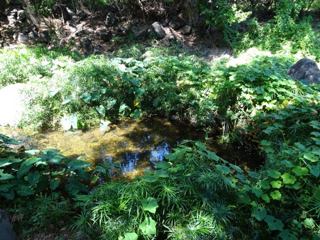 Si l'on reste sans bouger en observant l'eau, on peut apercevoir de grandes écrevisses colorées aux pinces longues et fines qui chassent entre les cailloux (Macrobrachium lepidactylus). Certaines montent parfois sur les berges mais ont vite fait de sauter dans l'eau au moindre mouvement ou bruit suspect. Dans ce cas rester sans bouger mais l'attente risque d'être longue car elle voit mieux ce qui se passe sur la berge que nous dans l'eau !