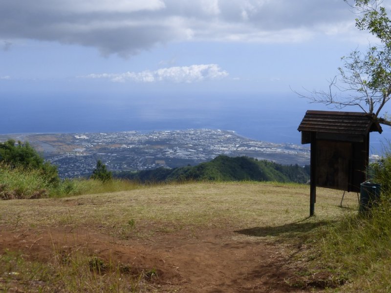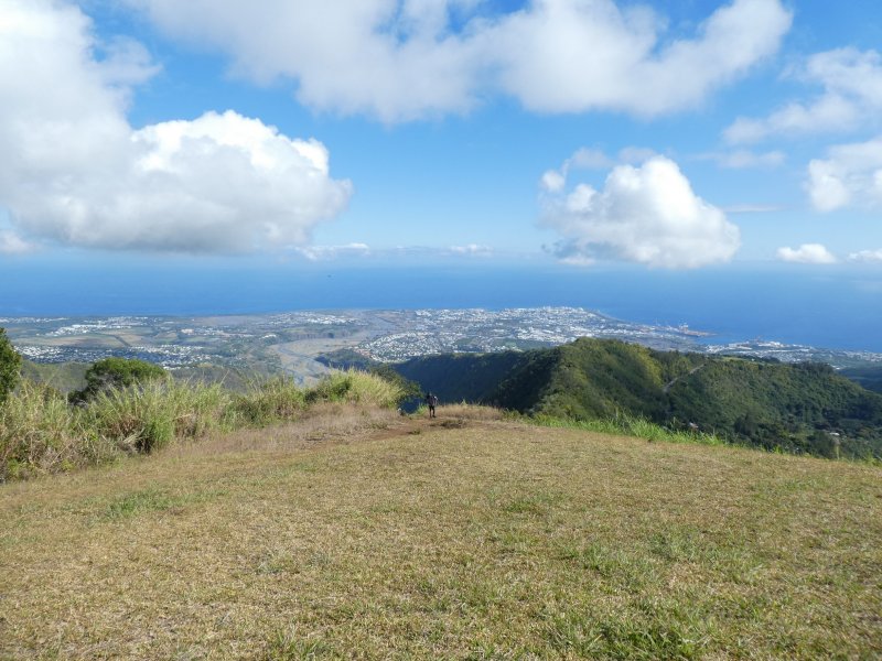 Inscrit dans une rando de 20 km (je ne serais jamais montée là-haut juste pour 1 h de rando sinon !!), ce piton de Sucre m'a réservé une agréable surprise. Partie de la Possession par le sentier Kalla, j'ai fini par déboucher sur le sentier de Bord et de là on voit ce fameux piton. La dernière partie est assez raide mais on voit côté Dos d'âne et côté Sans-Souci ; puis on débouche sur une belle aire dégagée, pour parapentistes. J'ai adoré le panorama large sur l'ouest ! Quelques vues possibles sur la rivière des galets en contrebas, sur la Cana des orangers en face, jusqu'au Piton des Neiges.