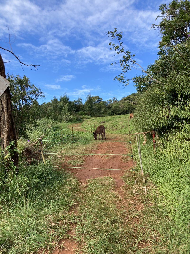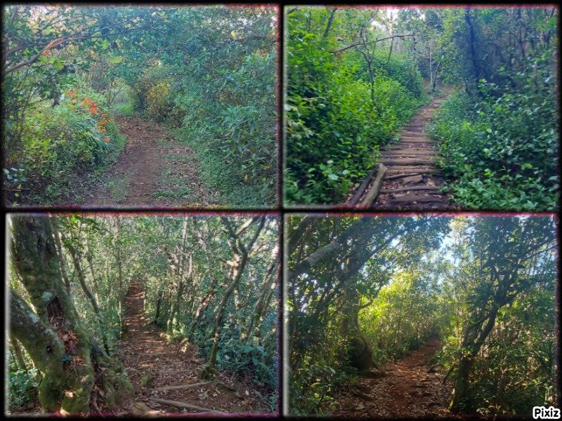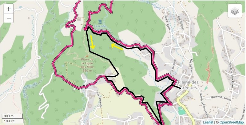 Cette boucle familiale, ou du moins certaines portions qui la constituent, est assez fréquentée par les habitants de la région pour des footings du matin ou des décrassages entre dames, parfois bavardes. Elle est plus facile dans ce sens qu'à l'inverse des aiguilles d'une montre mais permet de varier les paysages rencontrés pour les habitués des circuits des Margosiers ou du Curcuma. On traverse des zones de bois de couleurs mais surtout d'immenses étendues de goyaviers qui permettront, à la saison, de remplir le sac de fruits acidulés en vue de la préparation de bonnes confitures. On a la chance d'apercevoir souvent le village de la Plaine des Grègues depuis le Piton de la Ligne des Mille ou depuis certains points hauts. Le retour emprunte une longue portion de route mais il n'y a pas de raccourci traversant le rein du Piton de la Ligne des Mille. Elle monte constamment et traverse des grands champs de curcuma ou, plus loin des cultures ou prairies.