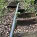 Randonnée aventure : Lors de la descente venant du point de vue sur les Makes, repérer le sentier partant sur la droite à un poteau de l'ONF. Le départ est étroit et déjà très envahi mais on ne peut pas perdre ce sentier qui devient plus facile à suivre dans une portion couverte de fougères et branles verts. On se rapproche de la Ravine Bellevue puis on entend couler de l'eau avant de se trouver au début d'une passerelle destinée au passage du tuyau (Photo 20). Les bois détrempés semblent fragiles mais supportent aisément le poids d'un randonneur. Par mesure de sécurité, il vaut mieux avoir toujours les pieds sur au moins deux planches qui plient au passage. Sur la droite, de petites cascades alimentent des bassins (Photo 21). A gauche et sous la passerelle, d'autres chutes et bassins descendent vers la ravine encaissée. Le sentier se poursuit après quelques marches et longe le versant en rive gauche de la Ravine de Bellevue. Repérer, 50 mètres après la passerelle, le sentier en très forte pente qui part à droite et mène vers le haut des cascades aperçues lors de la traversée. Les mains seront nécessaires. Le sentier principal, de plus en plus étroit, continue dans les longoses en suivant jusqu'à trois tuyaux empilés (Photo 22). On frôle un ouvrage bétonné de recueil des eaux proche d'un bassin aménagé. Les longoses recouvrent par milliers sous-bois et sentier mais on arrive pourtant assez facilement à la Ravine de Bellevue (Photo 27). Un important éboulis barre la rivière. Il est constitué d'énormes roches et certaines sont à demi accrochées à la falaise attendant la prochaine pluie pour dégringoler. Les aventuriers purs et durs s'inspireront des commentaires de Fanch et Christian ci-dessous pour organiser la "sortie des longoses" et voir cascades et sentiers bracos.
