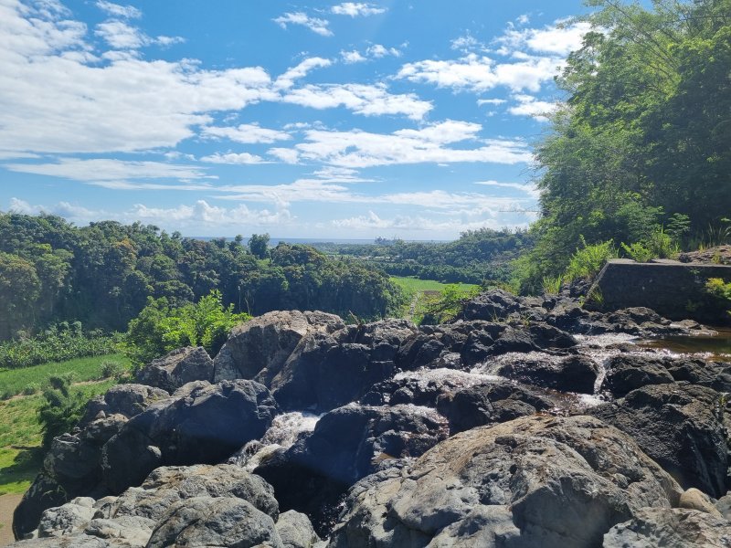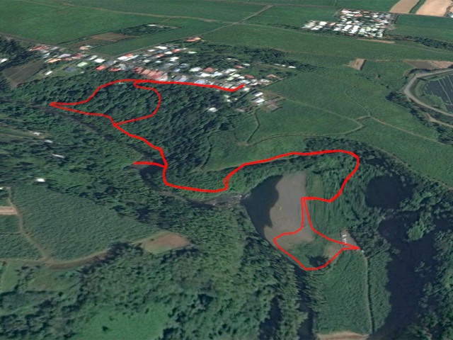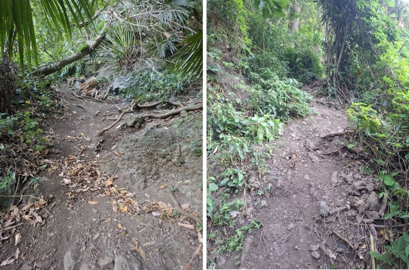 La boucle (surtout sa partie ouest) est un peu encombrée de végétation, de bambous ou de bananiers effondrés, mais on accède sans difficulté à la route du haut.