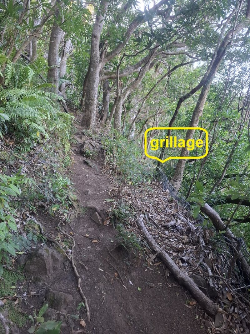 Montée raide et glissante puis arrivé en haut, grosse pluie et chemin bien encombré par les arbres -> abandon et retour par le même chemin raide et devenu encore plus glissant avec plusieurs passages compliqués. Bref, pas très agréable, je déconseille. Mieux vaut en rester au picnic en bas !
