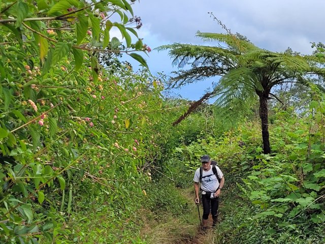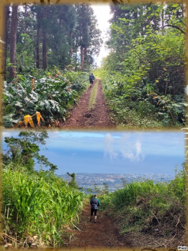 Jean-Paul a voulu augmenter quelque peu l'intérêt de l'incursion sur la piste de Bois de Nèfles, et c'est réussi avec cette boucle ! Voyage à travers 50 nuances de green (lol) , entre le vert jaunie des pistes herbeuses, le vert profond des cryptomérias, l'herbe tendre des prairies, et....malheureusement aussi le vert des pestes végétales !