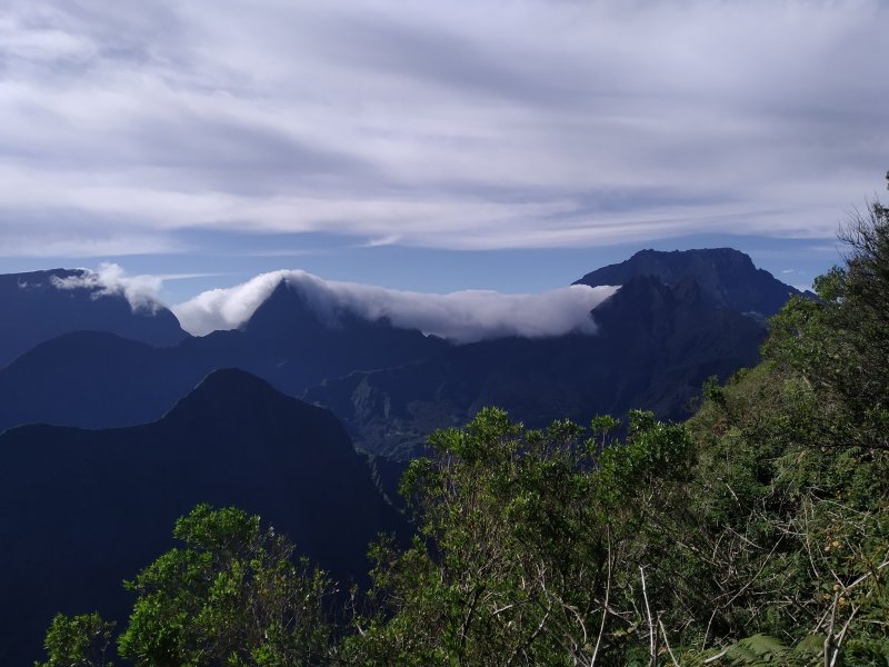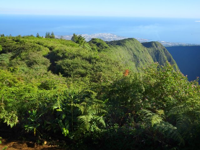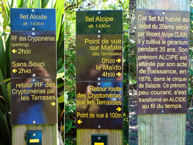 La sortie vers l'Îlet Alcipe est un classique de la région de Saint-Paul. Une montée constante de 1150 mètres permet de rejoindre un point de vue sur Mafate en visitant au passage un lieu perdu où vécut Vincent Alcipe Clain de 1900 à 1944. Il ne reste rien aujourd'hui des traces de sa vie à plus de 1500 m d'altitude. Hélas, sans réhabilitation sérieuse, ce petit coin de paradis est très vite devenu une friche inextricable. Trois sentiers permettent cependant de s'en approcher pour tenter d'imaginer quelques minutes ce que cet homme vécut durant près d'un demi-siècle. Avant d'arriver, on traverse des zones d'anciennes cultures du géranium désormais recouvertes des pestes connues à ces altitudes. Ce large sentier en très bon état, en montée continue, peut être un départ vers le Maïdo pour un petit tour dans les cirques ou, mieux, un retour par la canalisation des Orangers puisque les départs de ces deux sentiers sont distants de moins d'un kilomètre au village de Sans Souci. Les explications suivantes traitent, d'une part, de l'aller-retour par le sentier classique et, d'autre part, un retour par un sentier tentant de suivre au plus près le feu sentier des Orangers désormais recouvert de goyaviers et de fougères.