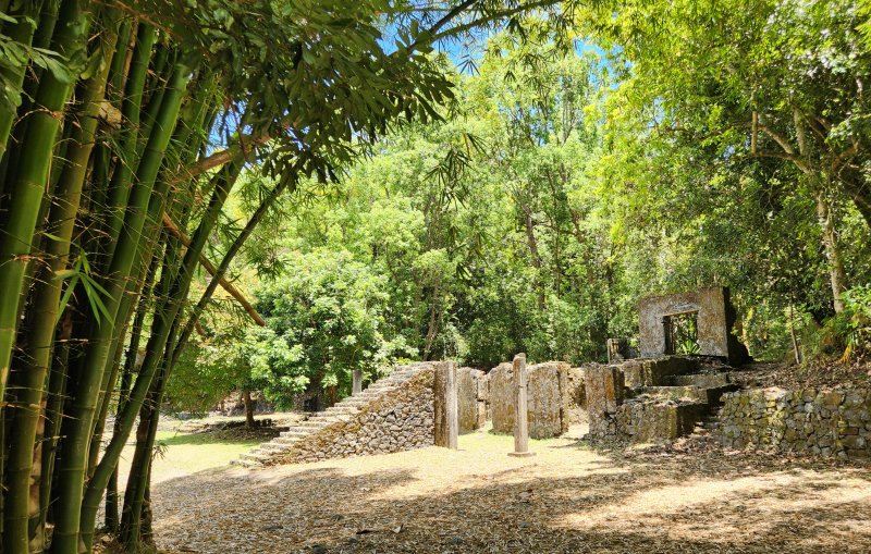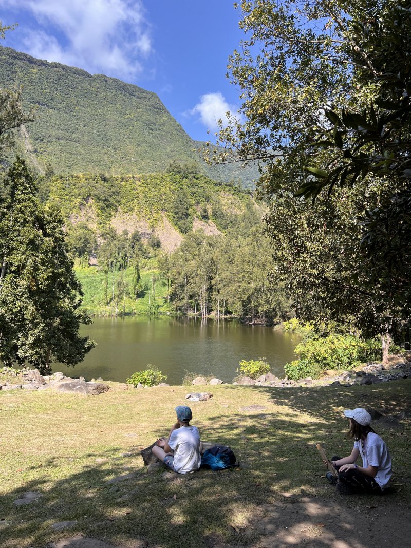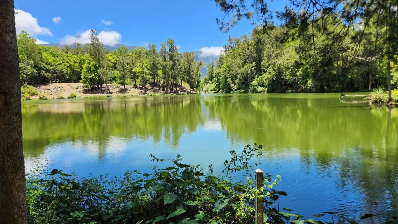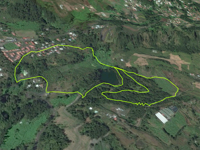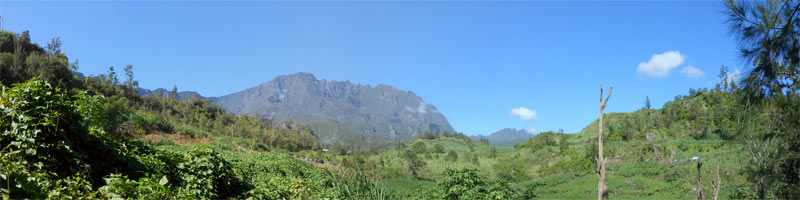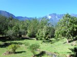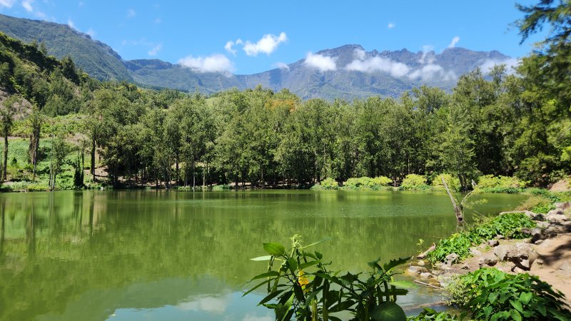 Mare à Citrons, Mare à Martin, Mare à Vielle Place : Quelque chose laisse à penser que la région est humide ! Quand on a aperçu en roulant les dizaines de cascades et qu'on arrive à la Mare à Poule d'Eau on a la confirmation que le Cirque de Salazie regorge effectivement d'eau. Pourtant, l'humidité est plus supportable que celle des forêts humides à moins de 5 Km à Bélouve ou aux Bras des Lianes. L'écrin de verdure entourant la Mare à Poule d'Eau vaut à lui seul le déplacement. Si on y rajoute les magnifiques aires de pique-nique disséminées dans les sous-bois, une ruine curieuse présentant un escalier solitaire, des champs de chouchous à perte de vue, de grosses touffes de bambous, de magnifiques panoramas sur le Gros Morne, la possibilité de pêcher des tilapias ou de contempler des poules d'eau on a alors toutes les raisons d'y aller quelques heures se reposer d'une semaine chargée. Cette très facile randonnée s'adresse particulièrement aux familles qui veulent profiter de beaux paysages, marcher un peu sans fatiguer les marmailles et se reposer autour d'un repas pris sur une table propre et ombragée.