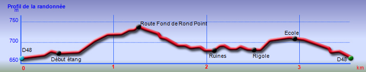 Plusieurs sentiers ou pistes sillonnent la zone entourant la mare et l'on peut se promener à sa guise en s'inspirant du panneau présenté en début de sentier. Le circuit ci-dessous propose deux petites boucles afin de profiter des points caractéristiques et permet même une visite au village qu'on rejoint ou qu'on quitte par deux magnifiques chemins de traverse.