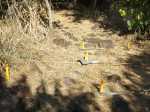Le club a l'autorisation du propriétaire d'utiliser la parcelle le dimanche. Si de nombreux véhicules sont stationnés le long de la route près de la déchetterie, c'est que l'équipe est en place. La parcelle est en jaune sur la carte ci-contre. Il est alors conseillé de partir par le sentier le plus à l'ouest et de revenir par ce même itinéraire. Le mieux est peut-être d'éviter le dimanche et d'y randonner les autres jours de la semaine.