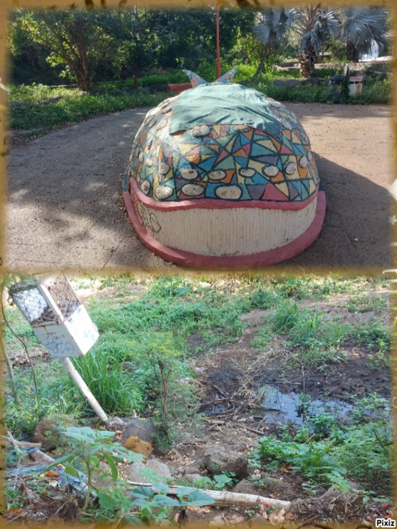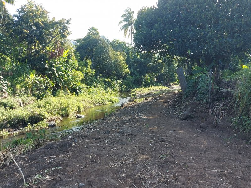 La randonnée débute à l'entrée du Théâtre de Plein Air de Saint-Gilles à partir de la D10. Il vaut mieux stationner le long de la route avant d'emprunter à pied la petite route menant au théâtre. On parvient à une barrière d'où il est facile d'évaluer le chemin à parcourir en repérant Saint-Gilles droit devant (Photo 1). Le panneau situé au départ donne des indications sur les barrages et systèmes de transport de l'eau au XIXème siècle (Photo 2). Avant d'entamer la descente par la large piste empierrée, repérer le sentier partant en direction de la colline. Il est étroit, peu entretenu, mais se suit sans difficulté jusqu'au sommet encombré de roches entourant les installations des antennes (Photo 3). En dominant l'océan de 125 m, on bénéficie depuis les rochers de belles vues sur la région, le théâtre, la Ravine Saint-Gilles ou les vergers (Photo 4). On remarque également le port entouré des habitations blanches de la ville (Photo 5). Rejoindre le point de départ. Il est possible de commencer la descente en allant repérer le kiosque pour le casse-croûte du retour, accessible aux handicapés (Photo 6). Rejoindre alors le circuit principal bordé au début d'une longue barrière en bois (Photo 7). Le chemin, très fréquenté, est large et propre. Il frôle une petite grotte occupée par un "Ti bondié" et se poursuit en descente légère sur un sol de plus en plus caillouteux (Photo 8). Le balisage, parfois un peu effacé, est représenté par des caméléons verts qui ont donné leur nom au sentier (Photo 9). Même tôt le matin, la chaleur peut déjà être importante. On profite de larges panoramas sur la vallée étroite de la Ravine Saint-Gilles (Photo 10). Puis le chemin empierré descend de plus en plus vite sur une forte pente. On le trouve un peu raide au retour mais il est heureusement assez court (Photo 11). On parvient assez vite à de grosses touffes de bambou après avoir franchi une petite passerelle. Avant de poursuivre, on peut partir sur la gauche vers un ancien sentier botanique abandonné. Repérer les quelques panneaux encore en place et continuer ou non vers l'amont de la rivière en suivant un sentier en rive droite. Il passe à un moment dans un ancien canal de transport de l'eau sur un sol très caillouteux. On est très proche de la ravine et de son agréable bruit d'eau courante (Photo 12). Marcher ainsi jusqu'au petit barrage de recueil de l'eau à l'époque où de nombreuses usines sucrières avaient besoin du précieux liquide (Photo 13). Faire demi-tour jusqu'au jardin Bottard en retrouvant les bambous. Il reste des manguiers un peu partout. Des panneaux donnent l'occasion de souffler un peu en lisant les explications ou un poème (Photo 14). Continuer en rejoignant le premier gué constitué de grosses roches pouvant être glissantes après la pluie (Photo 15). On laisse donc le jardin Bottard et ses manguiers poussant à travers les roches pour marcher vers Saint-Gilles (Photo 16). Le petit cours d'eau devient de plus en plus paisible dans les cultures (Photo 17). Les taros et grandes herbes occupent également les berges (Photo 18). On parvient bientôt à un nouveau gué, plus glissant, qui se franchit en quelques secondes (Photo 19). La fin du sentier est toujours aussi facile entre d'anciennes plantations et jardins cachés derrière les haies abritant de vrais caméléons (Photo 20). L'eau stagne presque dans la ravine sur le sol de plus en plus plat (Photo 21). Le pont enjambant la Rue du Général de Gaulle indique la fin proche de la portion sur sentier (Photo 23). Profiter des dernières fleurs rencontrées tout au long du parcours (Photo 24). Les derniers mètres sont bordés de quelques panneaux (Photo 25) avant de remonter vers une aire de repos comportant quelques bancs. Au centre, une grosse baleine bigarrée accueille chaque jour des dizaines d'enfants grimpant sur son dos (Photo 26). Il est possible à cet endroit de faire demi-tour et revenir en direction du théâtre. Si l'on souhaite visiter Saint-Gilles, se diriger vers le port par des allées bordant la berge ou par les routes pour atteindre les ilots que l'on rejoint par des ponts et des escaliers (Photo 27). A la saison, les bateaux chargés de touristes ou de plongeurs partent en direction des baleines ou dauphins nageant au large. Si la chaleur n'est pas trop forte, flâner dans les rues de la petite ville balnéaire et rejoindre par exemple la case Chez Loulou pour y déguster une de leurs spécialités (Photo 28). Il est possible de poursuivre la visite vers la Vierge à une centaine de mètres de là. Le retour emprunte le même itinéraire, un peu plus difficile en raison de la pente sur les marches en pierre.