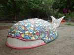Après le 2ème gué, lorsque l’on aperçoit les lianes calebasse en fleurs, le sentier est plus évident et on parvient rapidement à la baleine multicolore .