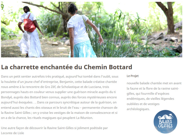Le site BALADES CREATIVES propose une manière bien différente de visiter ce lieu. "Une autre façon de découvrir la Ravine Saint-Gilles si joliment poétisée par Leconte de Lisle". Bonne écoute.