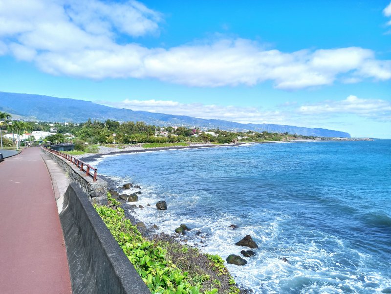 Rien de tel qu'une randonnée totalement à plat pour se reposer de la dernière sortie dans les cirques. Cette sortie familiale par excellence, un peu longue (22 km) mais très facile permet de contourner Saint Denis et rejoindre Sainte-Suzanne en suivant le littoral. Se succèdent alternativement pistes cyclables, routes goudronnées, chemin sableux ou caillouteux sans emprunter une seule fois une route dangereuse. Le contournement de l'aéroport est obligatoire et permet une incursion à l'intérieur des terres, habitées à ces endroits. Quelques rares portions ombragées permettent de quitter la casquette ou le chapeau et profiter du léger courant d'air venu du large. Seuls quelques panoramas sur la Roche Ecrite ou le Piton des Neiges au loin sur l'horizon permettent de se souvenir qu'on est à la Réunion. Effectivement, cette escapade dans le nord ne permet pas de rapporter des clichés inoubliables. Parmi les points particuliers rencontrés, on peut citer le Parc des Tamarins, le port de Sainte-Marie, l'ancienne voie de chemin de fer reliant Saint Denis aux villes de l'Est désormais recouverte de terre, le Phare de Bel Air, la Mare, ou la zone de loisirs de Sainte Suzanne. Il faut impérativement prévoir un véhicule à Sainte Suzanne pour éviter d'effectuer le chemin inverse qui transformerait cette balade en véritable randonnée. L'idéal, avec des enfants, est de les accompagner en marchant ou en trottinant quand ils pédalent jusqu’à Sainte-Suzanne.