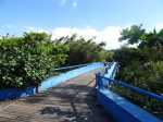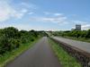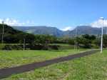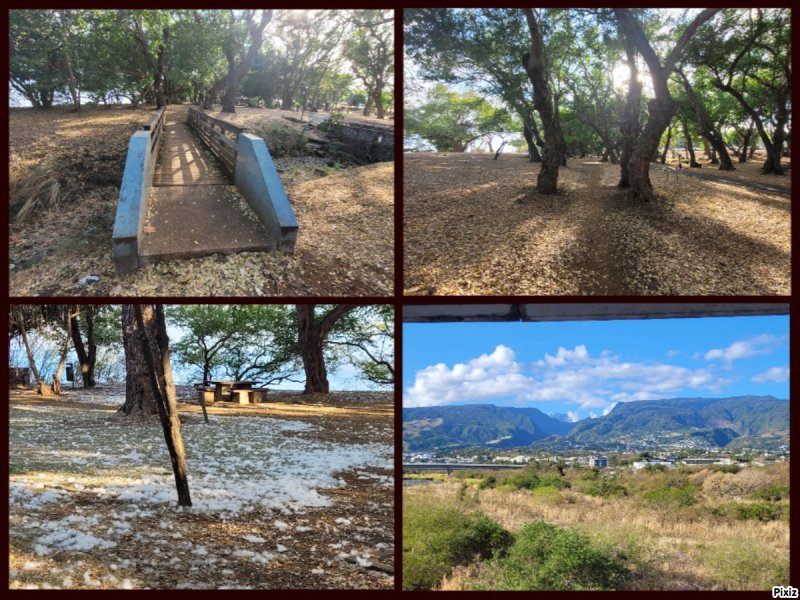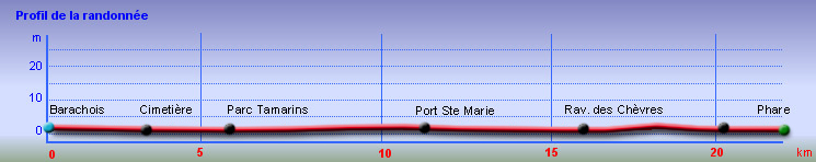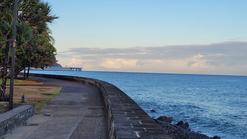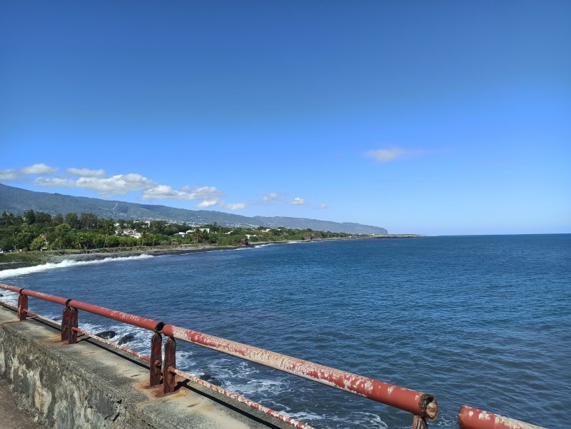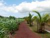 La randonnée débute au Barachois mais le parcours commence déjà sur la rive droite de la Rivière Saint-Denis avant de passer au Barachois. Si on vient peu souvent à Saint-Denis, ne pas hésiter à passer une vingtaine de minutes à visiter le Barachois avec la photo classique des canons (Photo 1), le monument des Engagés, la statue de Roland Garros, le café du même non, les jeux pour enfants ou les statues. La randonnée débute vraiment aux alentours de la gare routière sur un parcours de qualité sur lequel on rencontrera cyclistes, patineurs, rollers, coureurs, marcheurs ou promeneurs de chiens. La piste suit la longue plage de galets d'où l'on entend autant la mer que la circulation de l'autre côté (Photo 2). C'est d'ailleurs le seul inconvénient de ce périple semi-urbain où l'oxygène du large se mêle aux échappements. Très vite, on arrive au cimetière militaire et au très long cimetière de l'Est qui mériterait 30 minutes supplémentaires à réserver pour plus tard (Photo 1). Après le cimetière, le circuit coupe la ravine du Butor, frôle les grands banians qui ont perdu la moitié de leurs ramures et se poursuit toujours au plus près des vagues. Le sentier du Littoral passe ensuite sur une passerelle (Photo 4) avant de traverser un parc arboré en face du Chaudron (Photo 5). Ce parc couvert de grands arbres abrite également de beaux palmiers (Photo 6). Marcher vers la Jamaïque et ne pas manquer le Cimetière la Peste, un lieu historique qui rappelle plus la grippe espagnole que la peste (Photo 7). La petite route plonge pour franchir le radier de la ravine du Chaudron au fond rempli de roches puis oblique sur la droite en même temps que la voie rapide (Photo 8). On peut même marcher sur la route ou la piste quelques mètres plus haut mais la distance et la difficulté sont identiques. Les deux se rejoignent et la jonction avec le pont sur la Rivière des Pluies n'est qu'une balade (Photo 9). L'ouvrage, très long pour traverser le delta de la rivière est bien conçu ; d'un côté les piétons, de l'autre les cyclistes (Photo 1). La traversée est rapide en profitant des vues sur la rivière et sur la mer (Photo 11). De l'autre côté on voit vers le Gros Morne qui dépasse et vers le pont du Boulevard Sud (Photo 12). Dès que le pont se termine, le trajet oblique vers la droite, passe sous la voie rapide avant de revenir du même côté après un franchissement de tunnel. D'autres pistes cyclables partent vers la Bretagne (Photo 13). L'énorme rond-point de Gillot se franchit facilement par des passages piétons mais il faut tout de même se méfier des passagers pressés de prendre leur avion. On marche au plus près de la route de Sainte-Marie et de la RN2 (Photo 14). Un peu après le rond-point de Gillot, il y a possibilité d'emprunter un sentier qui longe la piste. Rien d'obligatoire mais on a la sensation de randonner au moins sur 300 mètres (Photo 15) ! Partir à gauche pour terminer le contournement de l'aéroport et se diriger vers Sainte-Marie. Au grand rond-point de la Mare, le trajet est facile à suivre pour continuer vers la mer et le port. Cependant, un temple méconnu et peu visité mérite un petit détour en partant vers la station de Météo France et en bifurquant à la première rue à gauche. Le temple est sur la droite de la route tandis qu'une statue de Hanumân, le vaillant Dieu-Singe trône sur la gauche (Photo 16). Puisque l'heure est à la visite, un petit détour par l'ancienne usine sucrière de la Mare permettra de voir une excellente réhabilitation où subsiste encore une belle case créole et l'énorme grue de déchargement (Photo 17). Le port, quant à lui se rejoint très facilement lorsqu'on passe à proximité (Photo 18). Le trajet continue en passant très près de l'océan et en franchissant facilement la Ravine Sainte-Marie. Avant de se diriger vers le sentier Littoral en quittant Sainte-Marie, pousser quelques dizaines de mètres en direction de la chapelle Notre Dame de la Salette qu'on aperçoit en passant à proximité. L'église et le cimetière, un peu plus haut, mériteraient également un détour mais il ne faut pas que cette randonnée se transforme en circuit touristique. La piste repart vers l'est en longeant la route de la Convenance (Photo 20). La courbe de la route étant juste en face de la fin de la piste de l'aéroport, on a la possibilité d'assister régulièrement à des décollages (Photo 21). La piste goudronnée prend fin près d'une zone de pique nique, est remplacée par une piste plus ordinaire passant près du temple Tiruchendour et file sans difficulté vers la Ravine des Chèvres (Photo 22). Certaines portions en sous-bois sont très agréables à l'emplacement de l'ancienne voie de chemin de fer (Photo 23). Après la Ravine des Chèvres qui a demandé la construction d'ouvrages importants pour le passage du train, la piste est agréable avec son sol rouge et les cocotiers qui ont bien poussé aux abords (Photo 24). La piste, bordée de hauts talus creusés également pour le passage des rails franchit un tunnel avant de déboucher dans la zone du phare (Photo 25). On l'aperçoit sur la gauche qui domine le talus (Photo 26). La visite du phare n'est pas possible mais les locaux abritent l'office du tourisme ainsi que quelques boutiques ou artistes. Comme la randonnée prend fin bientôt, il est possible de rejoindre le bâtiment facilement (Photo 27). Poursuivre en longeant la plage jusqu'à la Rivière Sainte-Suzanne ou partir vers la droite et entrer dans les zones du Bocage pour franchir des passerelles proches de la zone de loisirs du Bocage, fin de cette longue étape du tour de l'île. C'est de l'autre côté de la rivière que débute l'étape qui mène à Champ Borne en longeant les étangs de Bois Rouge et du Colosse.