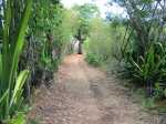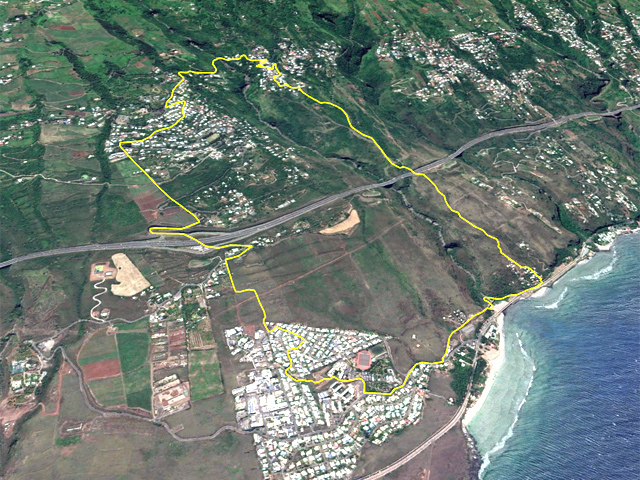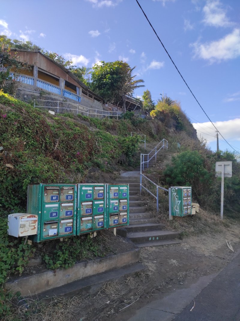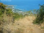 La randonnée commence au pied du village de Cayenne où de nombreux parkings sont installés de part et d'autre de la route. Le plus aisé pour débuter consiste à choisir le parking situé à droite avant le hameau et emprunter la piste jusqu'à Cayenne. Débuter la montée par les escaliers bétonnés qui commencent à la route (Photo 1). La grimpée vers le Bras Mouton débute par un escalier assez raide qui représente la rue principale du village (Photo 2). Pour vivre ici, il n'est pas obligatoire d'être sportif mais il faut au moins être en bonne santé. On rencontre de chaque côté des cases plus ou moins modestes près de belles maisons dont les propriétaires ont sans doute cherché la solitude (Photo 3). Dès la dernière case passée, on se retrouve très vite dans des herbes jaunes à suivre un beau sentier pavé encombré de roches (Photo 4). Les yeux portent sur l'océan jusqu'à la Pointe au Sel mais on ne voit pas encore Saint-Leu, caché par la végétation (Photo 5). La pente est faible et constante sur ces pierres plates installées là depuis parfois deux siècles (Photo 6). Les épineux bordent le sentier et peuvent griffer par moments si on ne cherche pas à les éviter (Photo 7). Une canalisation longe ce sentier sous les zépinards qui se sont multipliés depuis le départ (Photo 1). La montée n'a pas cessé jusqu'à l'approche de la bruyante Route des Tamarins qu'on franchit par un petit détour sous le pont du Bras Mouton (Photo 9). Un sentier fléché file en direction de la ravine et de ses cascades s'il y a de l'eau. Après avoir traversé sous la Route des Tamarins et franchi l'escalier métallique, on arrive à une passerelle en bois utilisée dans une autre boucle de la région. Le sentier qui part à droite vers une station de pompage semble avoir bien souffert alors que celui de Bras Mouton est en bien meilleur état. D'importants travaux d'excavation et de construction de pistes ont chamboulé le paysage par endroits mais des pancartes indiquent aux piétons le chemin à suivre (Photo 10). Après plus de 300 mètres de montée, les panoramas sur Saint-Leu se sont agrandis et on arrive à distinguer toute la ville (Photo 11). Un nouveau coup de rein amène à une bifurcation : un sentier bien défriché part tout droit mais se termine à une ravine alors qu'un autre file à gauche pour frôler une petite case et rejoindre les Bas de Bras Mouton (Photo 12). Le dernier raidillon jusqu'à la Route Hubert Delisle s'effectue sur une route en lacets mais sans difficulté, surtout que de nombreux raccourcis fléchés de orange font gagner du temps et des hectomètres (Photo 13 et 14). Prendre à gauche vers les Colimaçons et passer plusieurs ravines dont l'impressionnante Ravine des Colimaçons (Photo 16). A partir de l'entrée du village, il y a plusieurs possibilités en fonction de l'heure. Prendre à droite pour visiter le conservatoire des Mascarins, à gauche pour traverser un lotissement ou tout droit pour marcher dans le village. Le but est d'atteindre le lacet de la Rue Georges Pompidou à partir duquel débute le sentier qui va descendre rapidement vers la mer. D'autres raccourcis en escaliers évitent une nouvelle fois la route principale (Photo 17). Comme toujours, surtout en fin de semaine, le ciel est constellé de toiles de parapentes (Photo 18). Le sentier est rectiligne et descend parfois sur des portions faciles ou en pente légère (Photo 19). D'autres, sur terre et cailloux comprennent des parties hautes et glissantes tandis que d'autres sont totalement recouvertes de marches bétonnées pour un cheminement serein malgré la descente (Photo 20). Certaines portions encore présentes sur la carte IGN à l'endroit de l'échangeur ne sont plus praticables et il faut alors longer la route mais sans danger. En revanche, le court transit sur goudron entre les sentiers est bruyant. On domine la route des Tamarins avant de passer en-dessous après un long lacet de la route (Photo 21). Profiter, au passage de cette zone creusée, pour voir les couches empilées de gratons et de lave qui témoignent des centaines d'éruptions violentes sur les flancs du Piton des Neiges avant le grand effondrement. Après le premier lacet qui suit l'échangeur, prendre à gauche un sentier sec et bordé de millions d'acacias épineux (zépinards) qui descend en pente douce. Après avoir essuyé de nombreuses insultes canines en longeant des clôtures d'habitations, on parvient au lotissement, chamboulé par des travaux. Un nouveau sentier créé pour éviter ces travaux descend en contournant les habitations (Photo 22). Ce sentier finit à une impasse (Photo 23) avant de poursuivre par la Rue des Seychelles. Ne pas manquer, tout près, un autre sentier très agréable, passant par des aires de jeu ou d'entraînement, qui se termine à la route après être passé entre l'école primaire et le collège. Prendre la D12 vers la gauche et descendre vers la nationale. Si on a le temps, on peut visiter le conservatoire des tortues marines ou assister à l'atterrissage des parapentistes. Cayenne n'est qu'à 300 mètres, aussi, prendre la petite route qui part sur la gauche et qui recouvre l'ancienne voie de chemin de fer (Photo 24). On se retrouve très vite sur le haut du viaduc sur lequel passait le petit train venant de Saint-Pierre avant la fermeture de la ligne. Il est possible de descendre dans le lit de la Rivière des Colimaçons et de rendre une émouvante visite aux ruines diverses des multiples ponts qui enjambent encore la ravine à sec (Photo 25 et Photo 27. On peut également chercher sur les deux rives de la ravine, les spots d'escalade et peut-être y rencontrer de varappeurs en plein effort (Photo 28). Il est également possible de finir par l'aire de pique-nique ombragée à la fin du pont de chemin de fer ou rentrer à Cayenne par la plage de sable jaune.