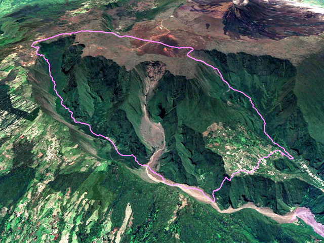 Se rendre à Bourg Murat et prendre la direction du Volcan - Passer l'aire de repos du Nez de Bœuf et rouler un kilomètre avant de trouver le parking situé au départ de la descente vers Roche Plate - Débuter la boucle par la descente vers le Mapou puis traverser la Forêt de la Rivière des Remparts et le Plateau de la Cascade avant de rejoindre Roche Plate - Traverser l'îlet puis le barrage de Mahavel et marcher en direction du Rein du Dimitile - Avant le rein, prendre l'étroit sentier du Dimitile qui rejoint le plateau de Grand Coude puis traverser plein Est pour trouver, à la fin de la route, le non moins étroit sentier qui relie Grand Coude à Grand Galet - A Grand Galet, prendre à gauche la piste puis le sentier vers Cap Blanc et Grand Pays - Remonter l'impressionnante pente qui rallie la Plaine des Sables - Traverser la Plaine des Sables et la RF du Volcan jusqu'au sentier Josémont - Prendre à gauche en direction du Plateau des Basaltes qu'on grimpe avant de rejoindre l'Oratoire Sainte-Thérèse - Poursuivre en direction du Piton Textor en coupant plusieurs fois la route du Volcan - Suivre le sentier qui est toujours proche de la route pour rejoindre le départ et le véhicule en profitant une dernière fois des splendides paysages sur la Rivière des Remparts si les nuages n'ont pas pris possession des lieux.