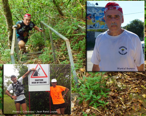 Martial Bertrix, 53 ans à l'époque, ancien militaire, passionné de lecture, d'informatique, de randonnées ou treks et ses amis Francis Combeau et Lauret Jean René, tous les 3 résidant dans la partie sud de l'île, grands consommateurs de chaussures de trail et amateurs de sentiers atypiques ont encore les jambes pour effectuer de telles boucles dans la journée. C'est sans hésiter qu'il a accepté de participer à la création de cette fiche qui servira à bien d'autres et qui m'a permis d'économiser mes genoux en très mauvais état..
