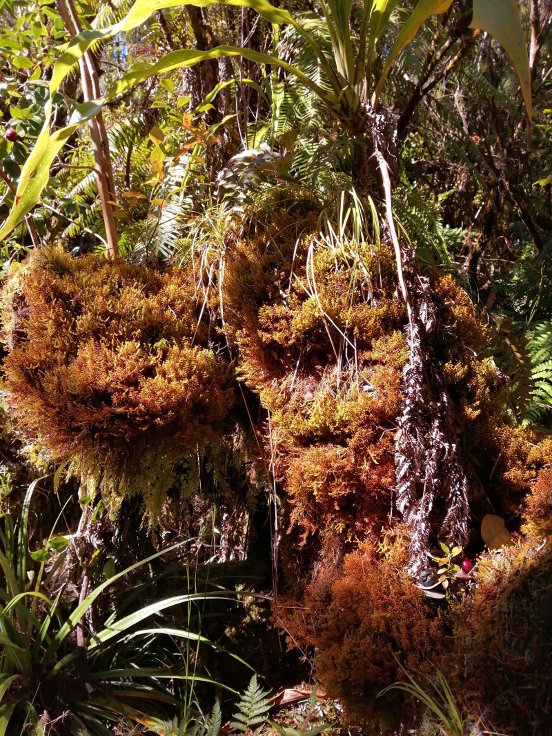 Hélas, comme sur presque tous les sentiers botaniques de la Réunion, aucune pancarte pédagogique ne vient renseigner sur les essences rencontrées. C'est avec un livre sur les plantes ou la page flore de ce site qu'il faudra rechercher le nom des plantes.