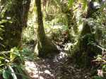 La randonnée débute au parking du sentier de Bras Cabot en direction du Cassé de Takamaka, près de la maison de l'ONF cachée près des cryptomerias à 100 mètres d'ici. Avant de partir en sous-bois empêchant tout panorama, profiter des vues sur le Coteau Duvernay et sa forêt de cryptomerias (Photo 1) ou vers les sommets recouverts de végétation qui dominent la vallée du Bras Cabot et le col de Bébour (Photo 2). Le sentier commence près de la pancarte présentant le sentier pédagogique de Bras Cabot, donnant quelques explications sur le lieu (Photo 1). Préférer le sens horaire inverse qui permet de commencer par le sentier plus banal et de terminer par le plus intéressant. Plus on chemine et plus la végétation s'épaissit (Photo 4). Le sol, très humide par endroits accueille des touffes d'arums qui ne sont vraiment beaux qu'en période de floraison (Photo 5). Il comporte des passages de rondins ou de planches de bois qui évitent de trop se salir les pieds (Photo 7). Certaines planches sont neuves ou en bon état, signe que les agents de l'ONF veillent à ce que ce sentier soit visité (Photo 13). Il faut de temps en temps se baisser pour passer sous des troncs moussus (Photo 17). La pente est insignifiante et peut se pratiquer par tous. Aucune bifurcation ne peut inquiéter et il suffit de marcher, l'appareil à la main, pour dégoter le plus possible de belles plantes, épiphytes ou orchidées à la saison. Les explications trop longues sont inutiles car tous les endroits traversés se ressemblent mais sont également différents. On trouve à chaque instant la fleur, la plante, la mousse qui permet un arrêt de quelques secondes pour l'étudier des yeux. Entre le sportif qui effectuera la boucle en 15 minutes et le botaniste qui stationnera 5 minutes par plante endémique, il y en a pour tous les goûts sur ce circuit très agréable.