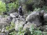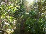 Cette remontée de la Rivière d'Abord est la quatrième et dernière proposition de sortie le long de cette ravine atypique et sauvage. Elle se place en seconde position au niveau difficulté et conviendra très bien à qui veut connaître cette vallée encaissée sans avoir à effectuer une longue boucle. Elle s'arrête symboliquement au Bassin Sainte-Thérèse, discret et difficile à repérer si l'on ne voit pas la pancarte après une remontée de plus de 7 km. Si les jambes souffrent dans la première partie, il est conseillé de faire demi-tour avant le bassin car les difficultés rencontrées sont exactement les mêmes dans la descente. Le Parc Marc Rivière n'ouvrant ses portes qu'à 7h30, il faut ou partir tard (non conseillé) ou en garder la traversée pour la fin après une courte visite à la Coopérative Agricole des Huiles Essentielles (CAHEB). Un sentier, difficile à trouver sans explications précises, longe la rivière entre Bel Air et Terrain Fleury. Il faut pour cela marcher un peu sur route mais sur une très courte distance. Une partie de ce sentier permet de s'approcher de 4 arches naturelles et de plusieurs grandes grottes en faisant cependant très attention si les rochers sont mouillés. Les photos seront plus belles au retour car le soleil est plus haut mais attention à la fatigue qui peut engendrer chutes et glissades. L'association et quelques volontaires ont redoublé d'efforts pour poursuivre ce chantier qui rejoint désormais la route de Notre Dame de la Paix. Outre les sentiers déjà décrits, la portion Nord se poursuit en longeant toujours la rivière. Il passe parfois au plus près ou la traverse pour changer de rive. D'autre fois il s'en éloigne pour franchir les remparts boisés qui entourent la rivière. Les montées sont alors courtes mais abruptes et c'est donc par une série de dents de scie que l'on rejoint la fin du parcours.