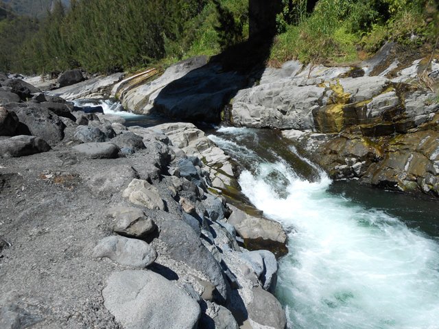 Nous décidons de continuer la rivière ! Super petite balade aquatique et parfois acrobatique à travers eau et escalade des cailloux !!! Des cascades et un beau bassin vous attend si vous continuez (mais pas possible de se rapprocher de près) !! Nous avons longer à peu près 6 km à l'aller!