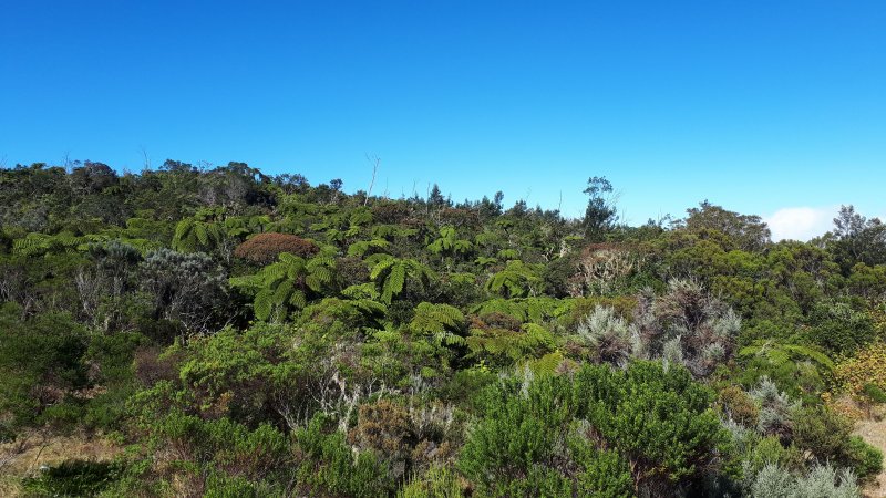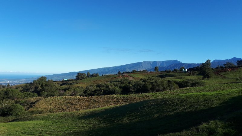 Chaque année, au mois de septembre, la commune de Saint-Pierre organise à Mont Vert les Hauts les Foulées de la Fraise. Cette course débute à l'Espace Vidot, bien indiqué à Mont Vert les Hauts, pour se terminer au Relais de Petite Île. Elle emprunte des portions de routes ou chemins privés gracieusement ouverts pour l'occasion. La randonnée ci-dessous suit une grande partie de cette foulée mais évite les zones privées, impossibles à pratiquer après l'épreuve. Le circuit est relativement court mais permet de traverser des zones très variées comme des prairies, champs, forêt de bois de couleurs ou forêt primaire. Seul inconvénient de cette balade : il faut se faire déposer et prévoir un véhicule à l'arrivée car un retour par la route Hubert Delisles rallongerait la boucle à 20 km, ce qui est néanmoins faisable sans difficulté. La route est agréable mais la circulation y est importante et les fossés extrêmement étroits quand il y en a. Cette sortie d'une petite quinzaine de km à travers champs, prairies et bois permet de visiter également le bel espace Vidot à Mont Vert les Hauts avant le départ ou celui de Relais de la Petite île à l'arrivée. Ils attirent chaque dimanche des centaines de pique-niqueurs. Plus rare et à ne pas manquer dans le Sud, cette belle forêt primaire où poussent toutes sortes de fougères et d'orchidées.