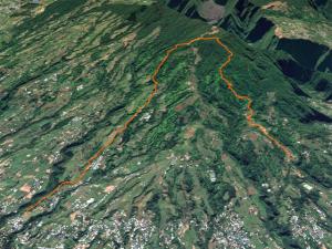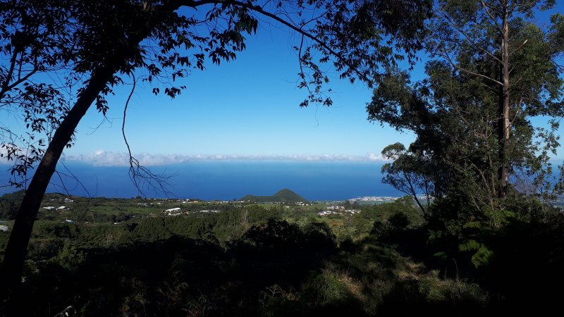 Nous avons fait cette randonnée par hasard elle ne vaut vraiment pas le déplacement. Le sentier est totalement envahi par la vigne marronne et autre peste végétales malgré l’utilisation d’un sabre pendant tout le trajet, sans compter des zones complètement inondées, la piste en elle-même n’a pas trop d’intérêt à part quelques petits affranchissements de guets puisqu’on longe d’un côté,, un fil barbelé et de l’autre côté des espèces végétales envahissantes. Le dernier Cyclone a aussi fait tomber beaucoup de troncs d’arbres. Arbres on a rebroussé au bout de 1h45 de montée, alors qu’on était à peine arrivé au tiers de la dénivellation