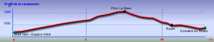 Se rendre à Saint Pierre, Grand Bois ou la Petite Ile et prendre la direction de Mont Vert les Hauts - Se garer à l'Espace Vidot, au nord du village - Le sentier débute à l'aire de pique-nique, suit la route et bifurque sur la gauche près de la piste VTT - Tourner à droite après la piste VTT et suivre la ravine des Cafres jusqu'à la route - Traverser la route et rejpoindre le sentier qui monte et longe les pâturages en frôlant les Hauts de Mont Vert - A la piste en terre, prendre à gauche sur 200 m et emprunter le sentier de gauche près d'une barrière métallique - Suivre le sentier qui franchit plusieurs petites ravines par des pentes boisées parfois très raides - Continuer dans de grandes prairies où l'herbe est parfois haute - Arrivé à la fin du sentier, à la Mare, prendre à droite puis immédiatement à gauche à la pancarte - Traverser la forêt primaire jusqu'à la piste qui s'élargit graduellement jusqu'à la zone de culture maraîchères et la route du Relais - Tourner à droite et suivre la route jusqu'au centre équestre, la chapelle puis le relais, terme de la sortie.