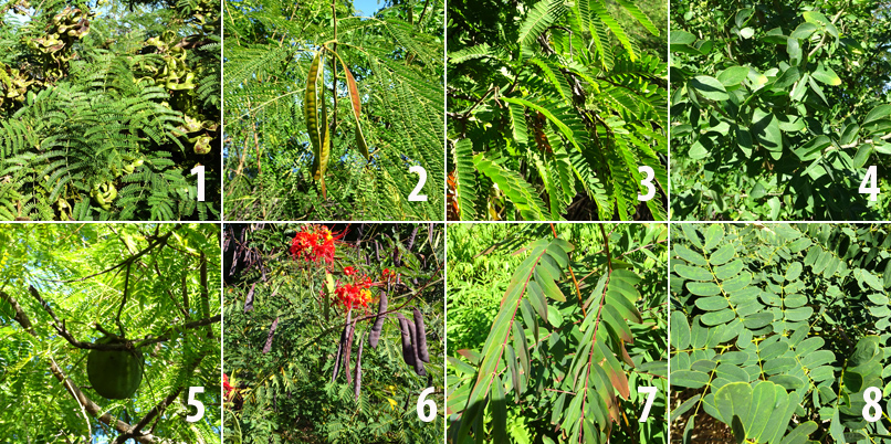 3 : Tamarin des bas – Tamarindus indica – tamarinier – Arbre connu pour ses fruits comestibles. Fleurs jaunes en grappes, gousses 1 à 6 graines entourées de chair sucrée. Invasif