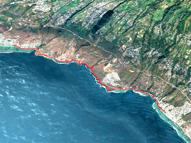 Cette courte sortie le long du littoral a été longtemps remise au lendemain car, à première vue, elle ne représentait aucun intérêt, excepté pour les explications liées au tour de l'île en 7 jours dont elle constituait une étape. Une fois terminée, il s'avère qu'elle est beaucoup plus intéressante qu'il n'y paraissait de prime abord. On ne fréquente la route goudronnée que sur environ 300 mètres. Les plages sont courtes et assez propres, les transitions rocheuses faciles, les zones basaltiques sont magnifiques et la mer se partage entre le lagon ou les fortes vagues se brisant sur les rochers. On rencontre pas moins de six arches naturelles, certes modestes et de magnifiques gouffres marins. De plus, de nombreux sentiers de bonne qualité sillonnent l'espace entre la route et le bord de l'eau, dans la Réserve Naturelle Marine de la Réunion. Tout est donc réuni ici pour passer un bon moment à marcher sans effort et prendre de superbes clichés de sculptures de lave, répandues par dizaines le long des falaises de lave solidifiée. Attention tout de même à certains passages en bordure de falaise où il vaut mieux éviter de glisser à 15 mètres au-dessus d'un gouffre écumant.