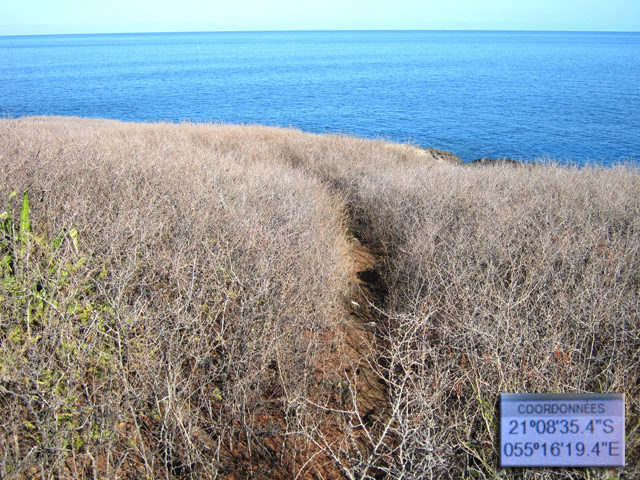 Pour rejoindre la Pointe Meignan, marcher sur la route après le pont de la Petite Ravine, laisser un parking à droite et saisir le sentier qui descend vers le mer dans les épineux, en face du parking suivant situé à gauche de la route.